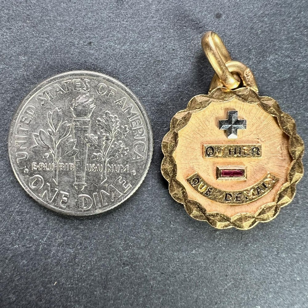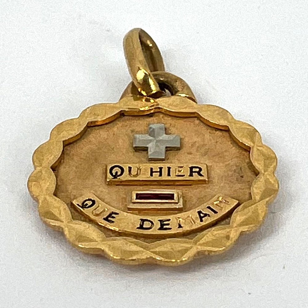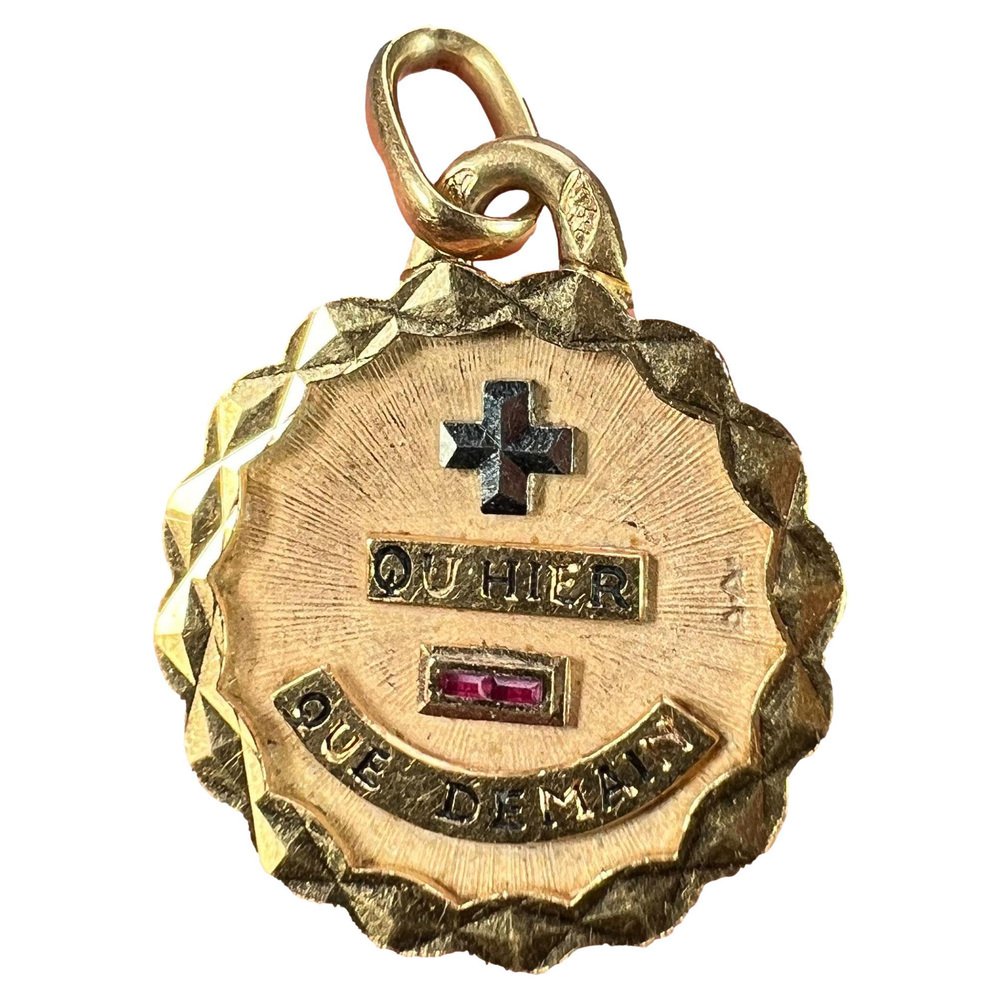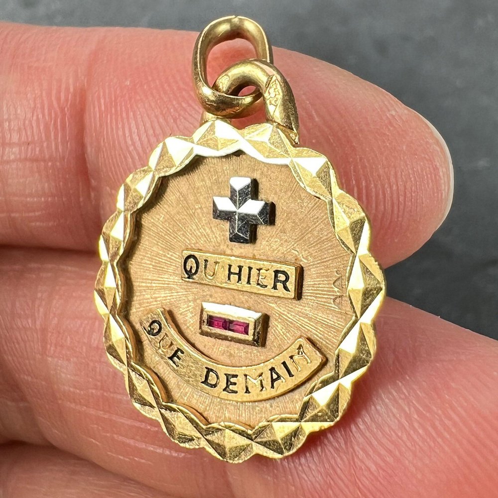 18 Karat Yellow and White and Gold Enamel More Than Yesterday Love Pendant with Ruby by Augis, 1960s