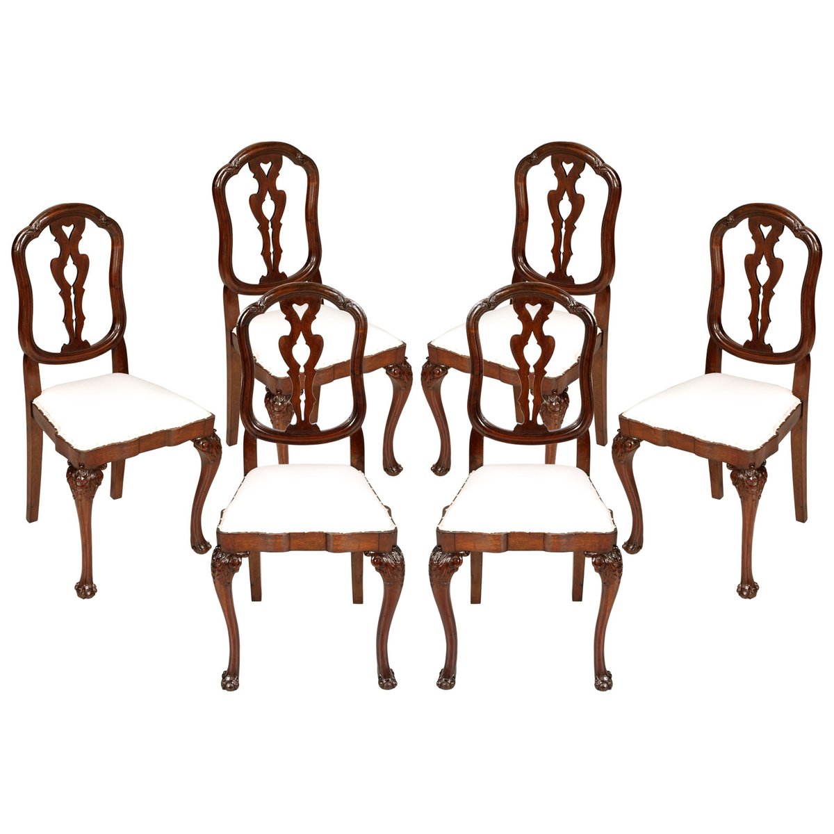 19th-Century Venetian Carved Walnut Chairs, Set of 6