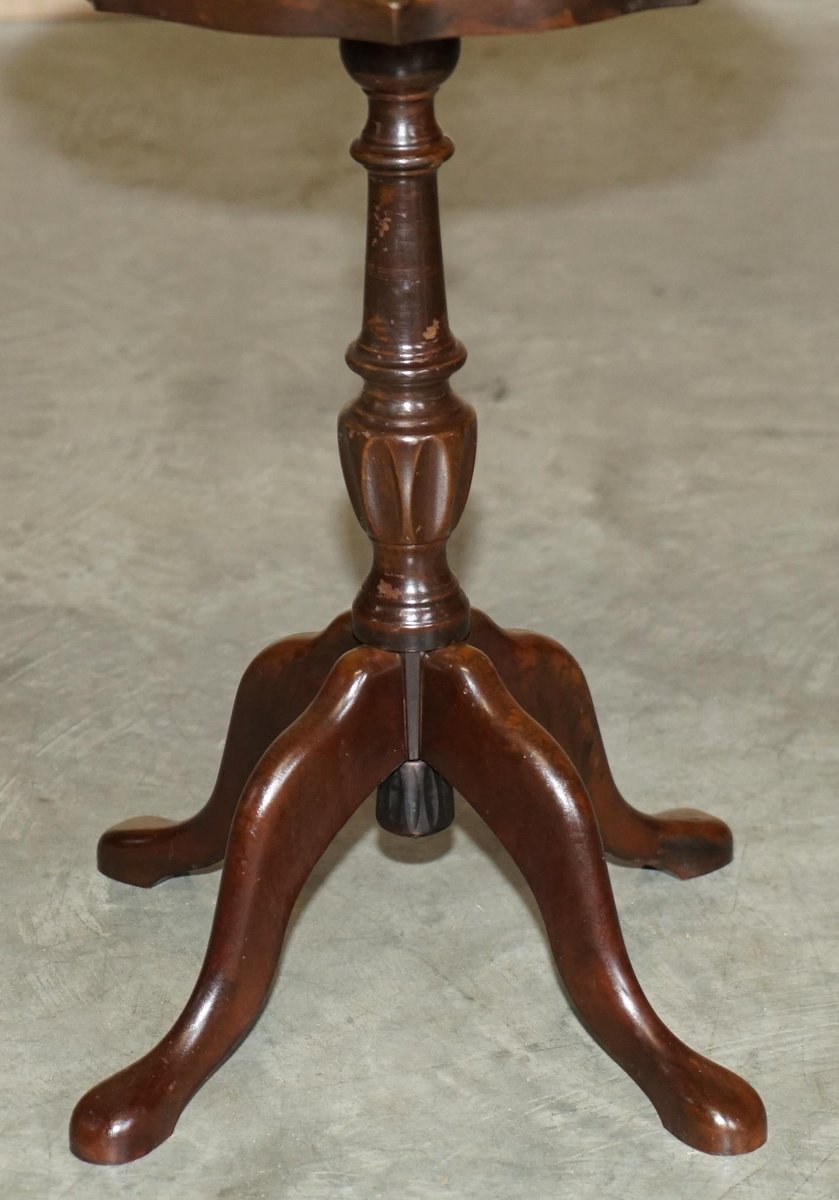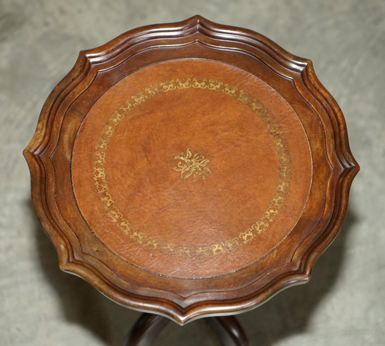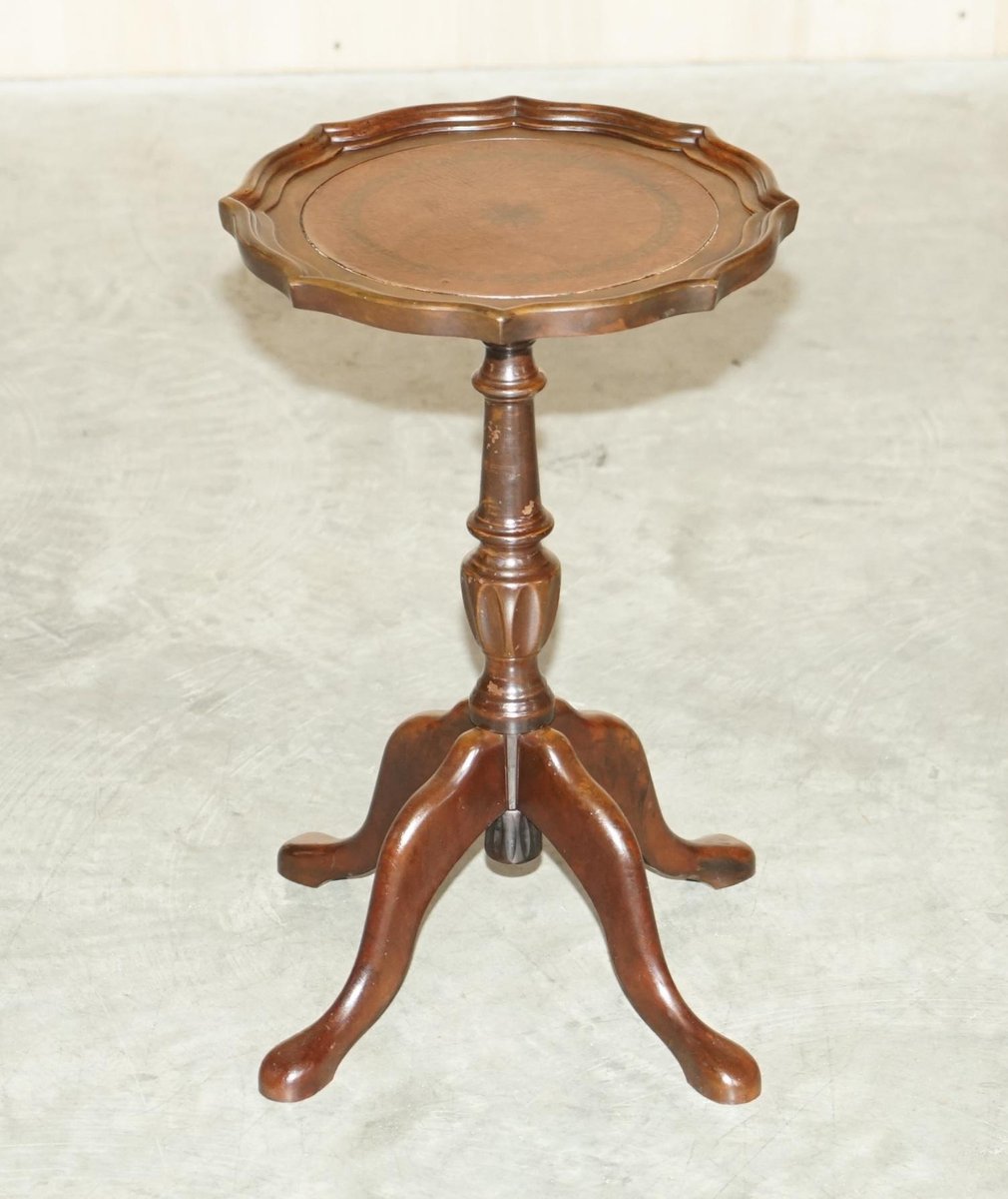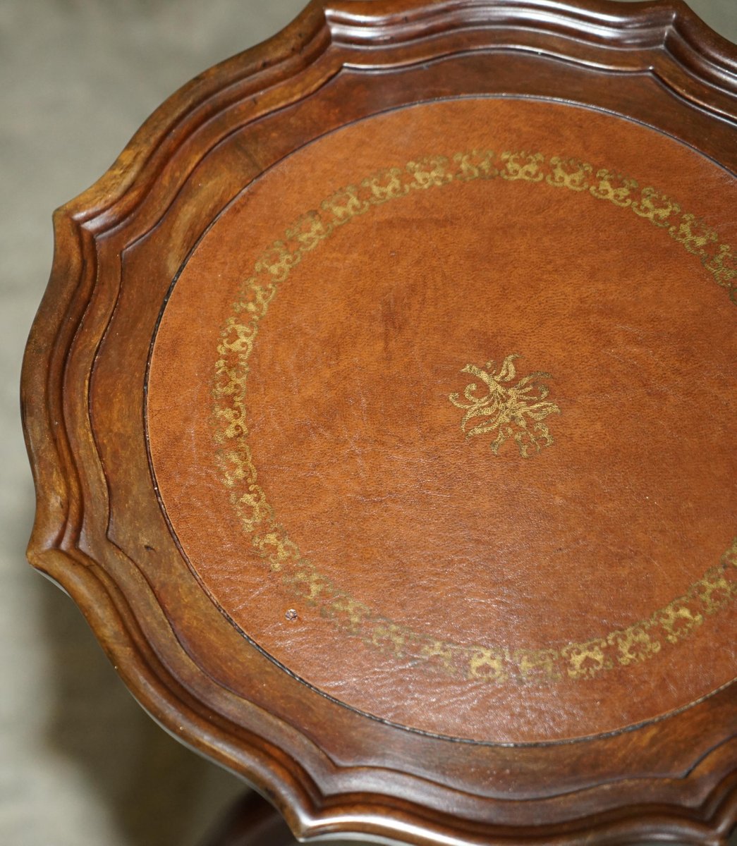 4 Legged Mahogany & Brown Leather Pie Crust Edge Side Table