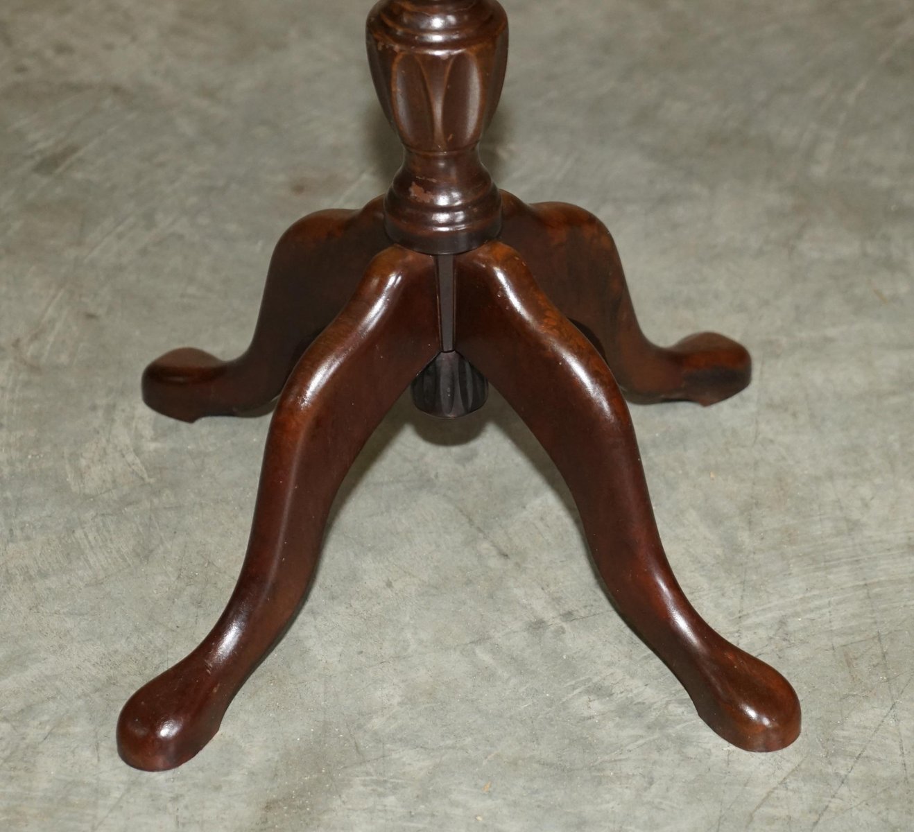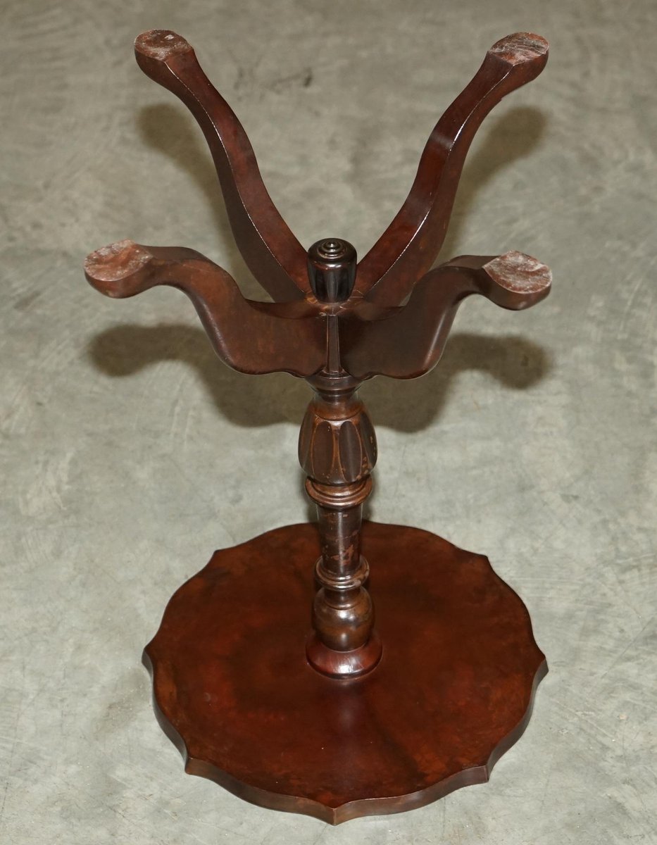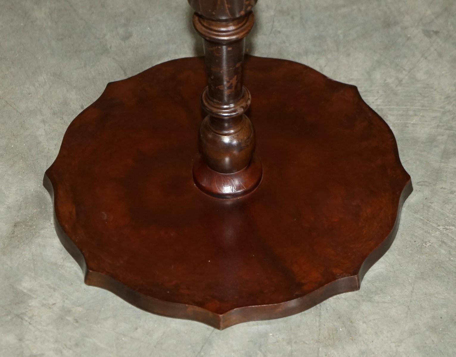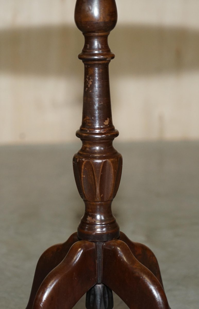 4 Legged Mahogany & Brown Leather Pie Crust Edge Side Table