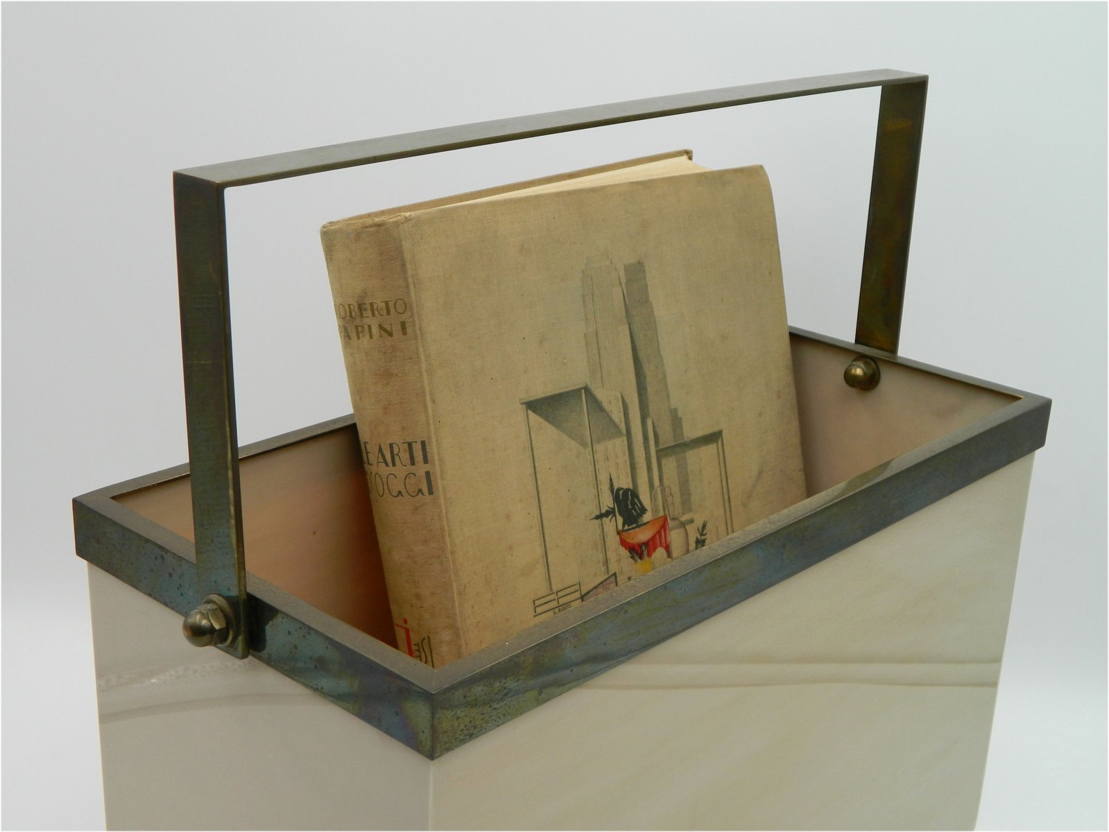 Acrylic Newspaper Holder in Marble Look with Brass Handle, 1970s