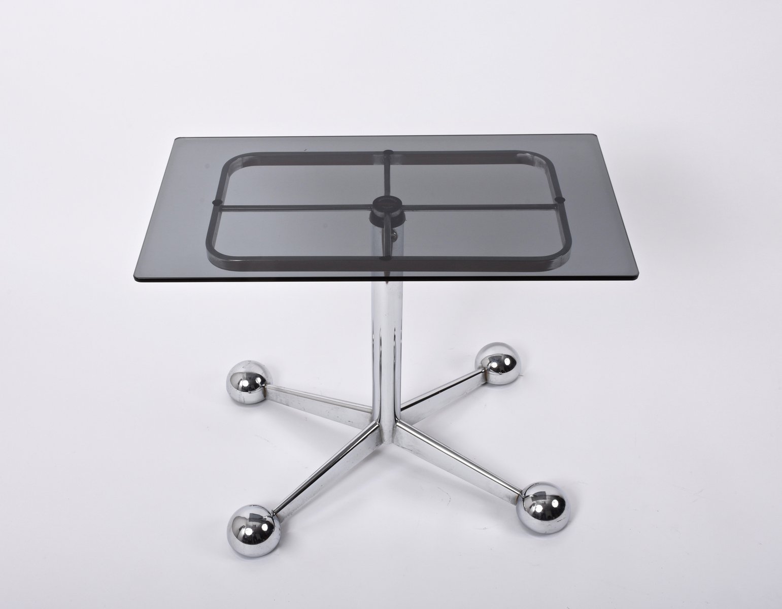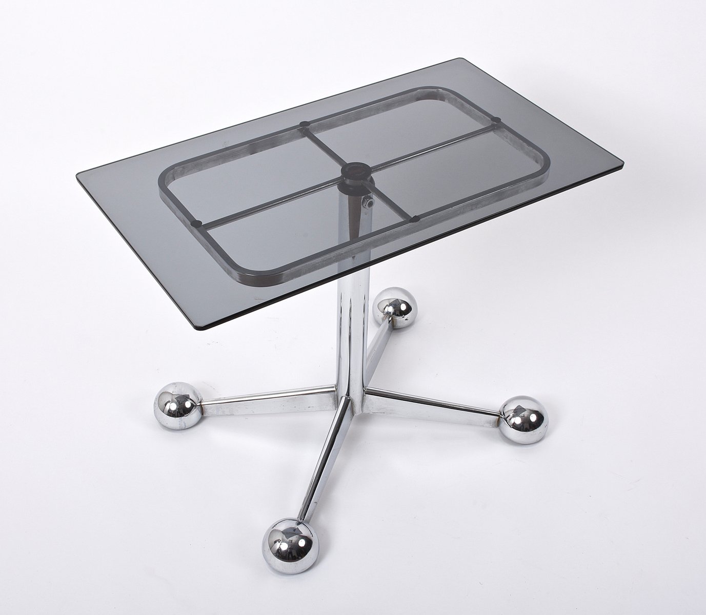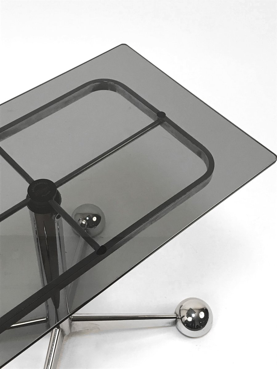 Adjustable Coffee Table in Chrome & Smoked Glass with Wheels from Allegri Arredamenti, 1970s