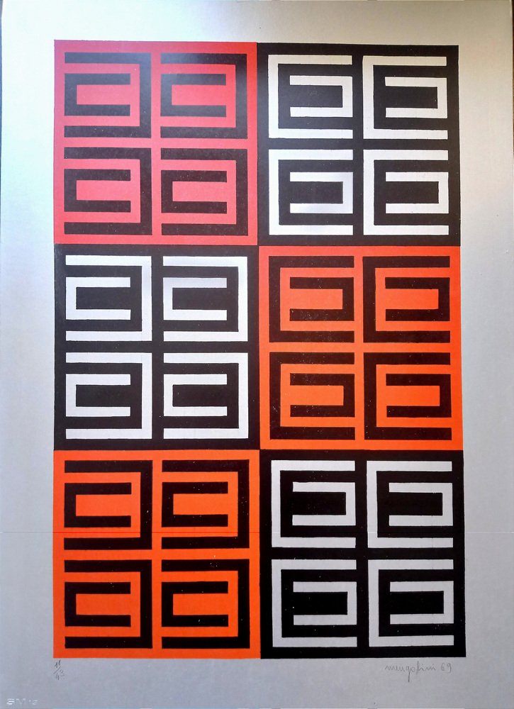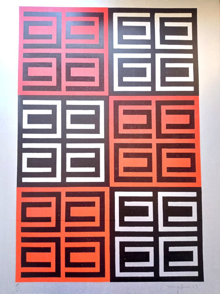 Aldo Mengolini, Abstract Composition, Serigraph on Silver Paper, 1969