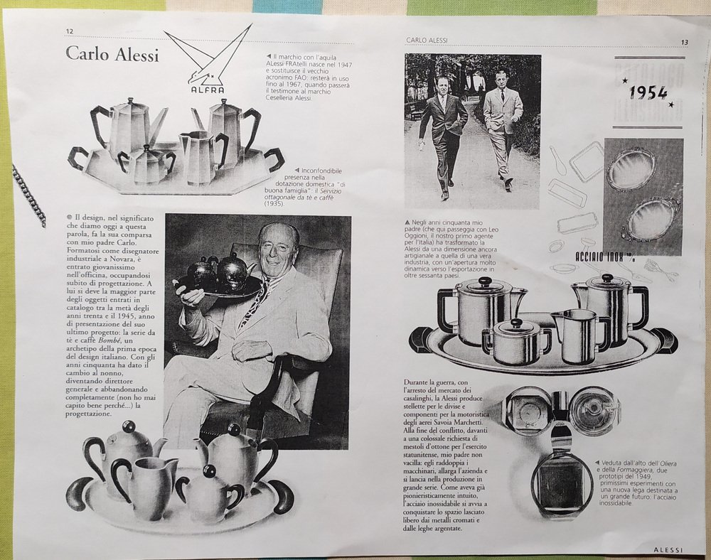 In 1921, the Italian metal-turner Giovanni Alessi purchased a parcel of land in Omegna, in the Piedmont region of Italy, and together with his brother founded a small atelier called Fratelli Alessi Omegna. The workshop produced crafted tableware and household objects in metal and wood, often inspired by the Art Nouveau designs popular in Austria and Britain at the time. With an obsession for quality finishes and careful execution, Giovanni propelled Alessi toward quick success.