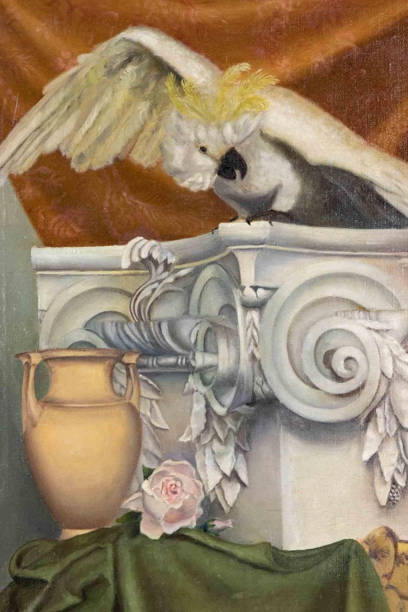 Allegory with Parrot, Capital, Amphorand Drapes, Late 19th-Century, Oil on Canvas