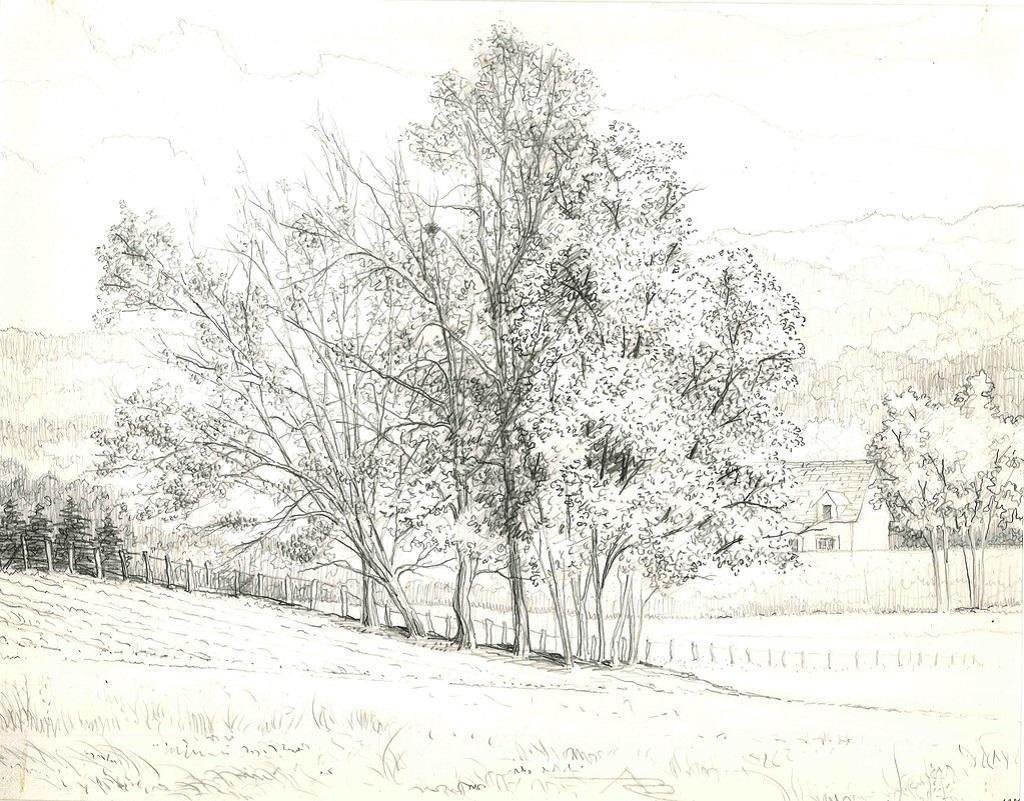 André Roland Brudieux - French Countryside - Pencil Drawing - 1960s
