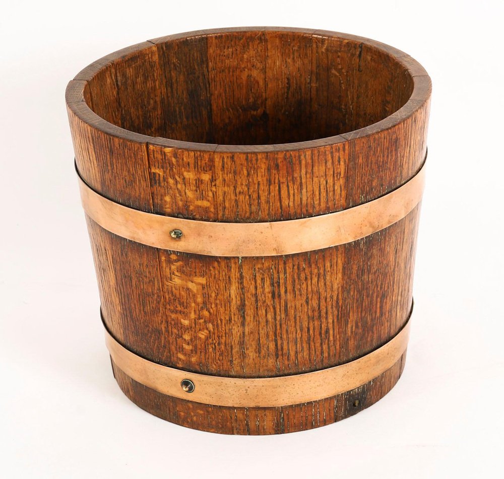Antique 19th Century Copper Banded Oak Jardiniere