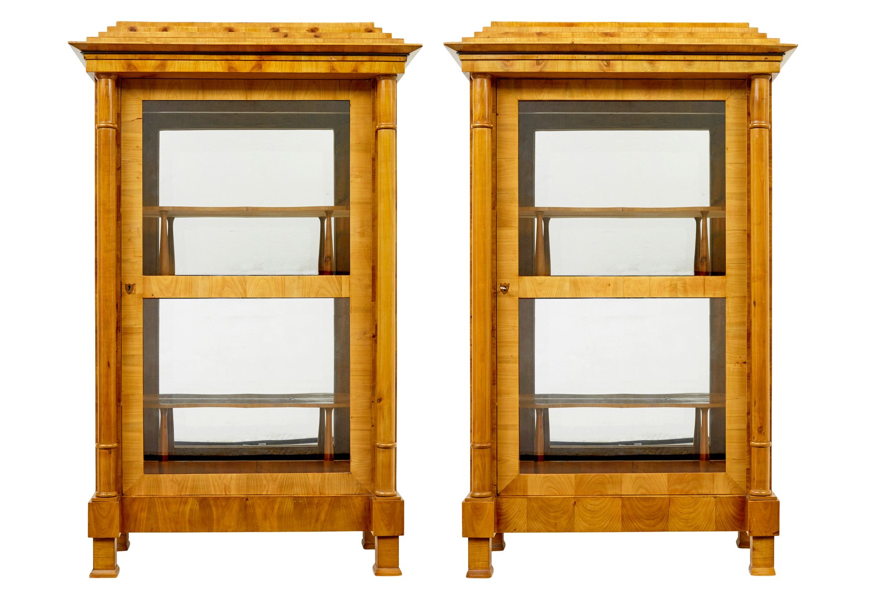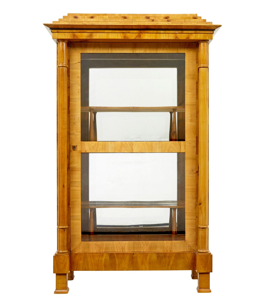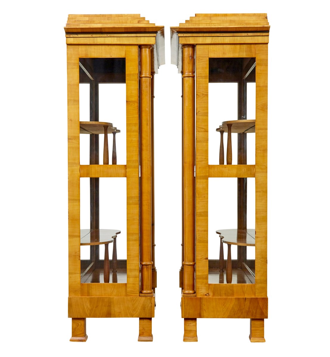 Antique Biedermeier Glazed Elm Display Cabinets, 1840, Set of 2