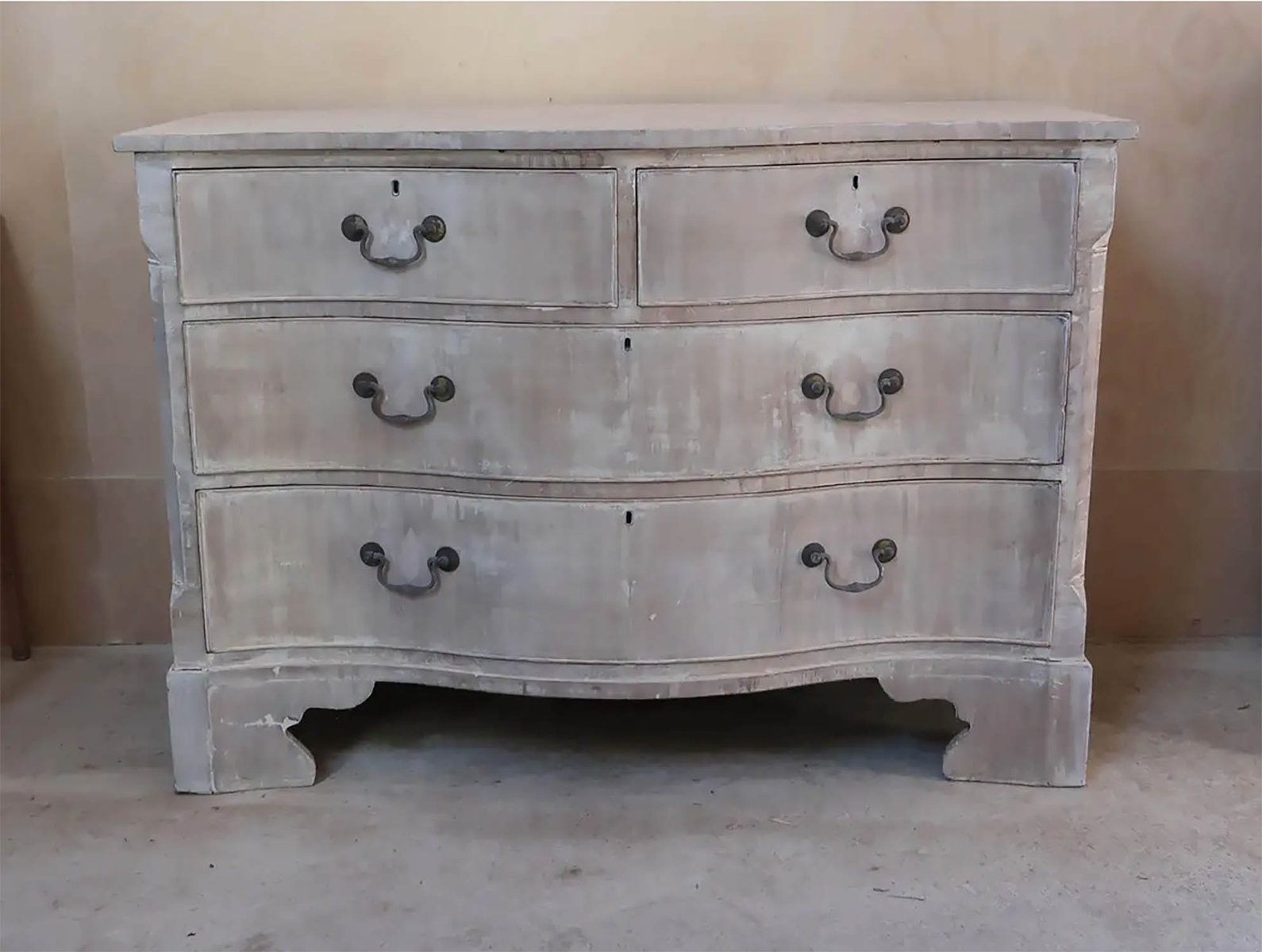 Antique Bleached Serpentine Fronted Chest of Drawers, 1780