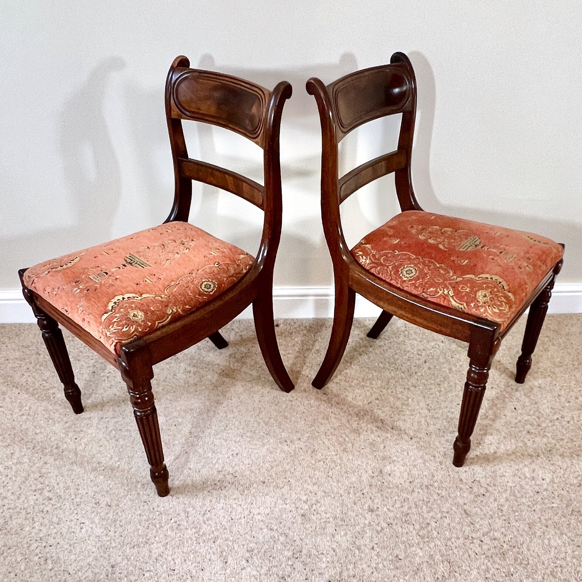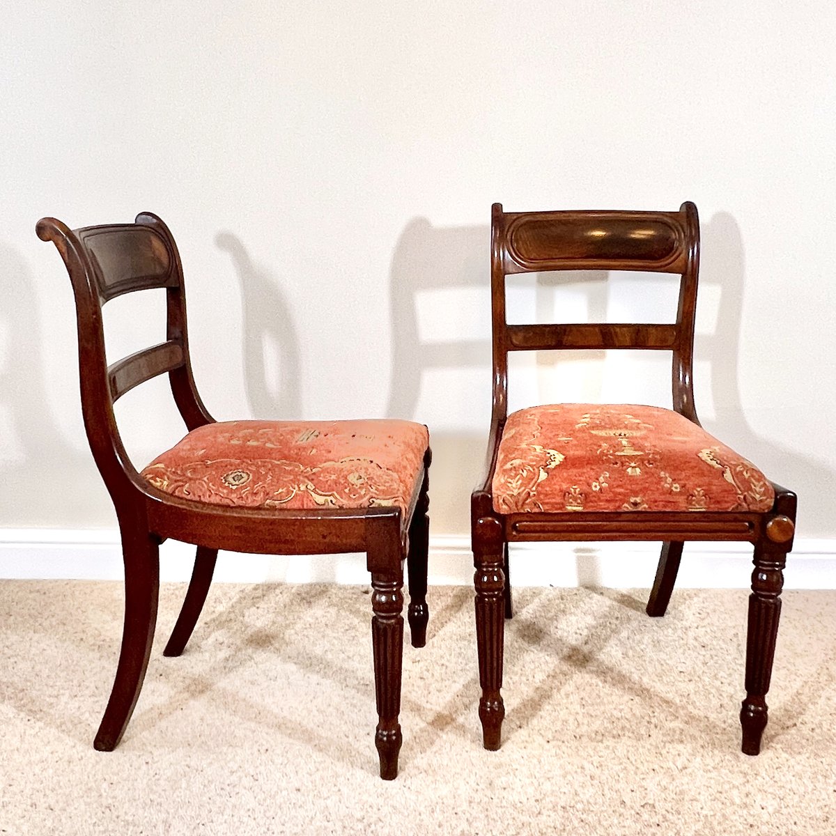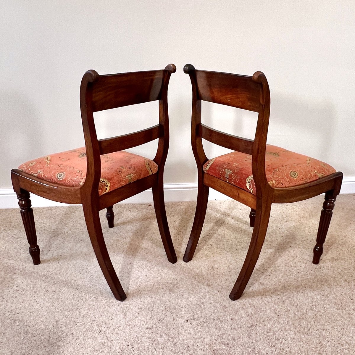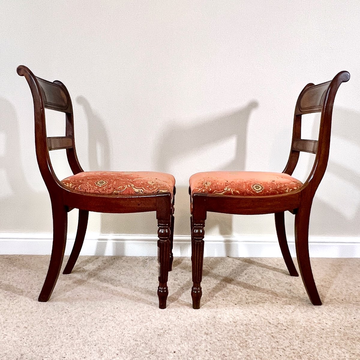 Antique English Regency Mahogany Bar Back Chairs, 1820s, Set of 2