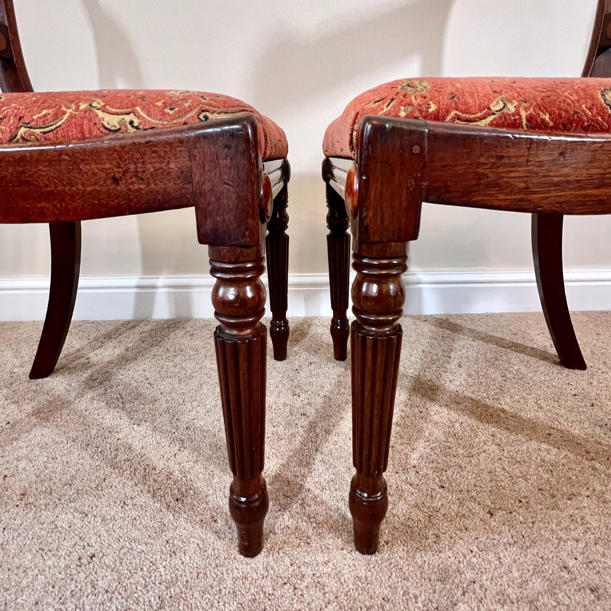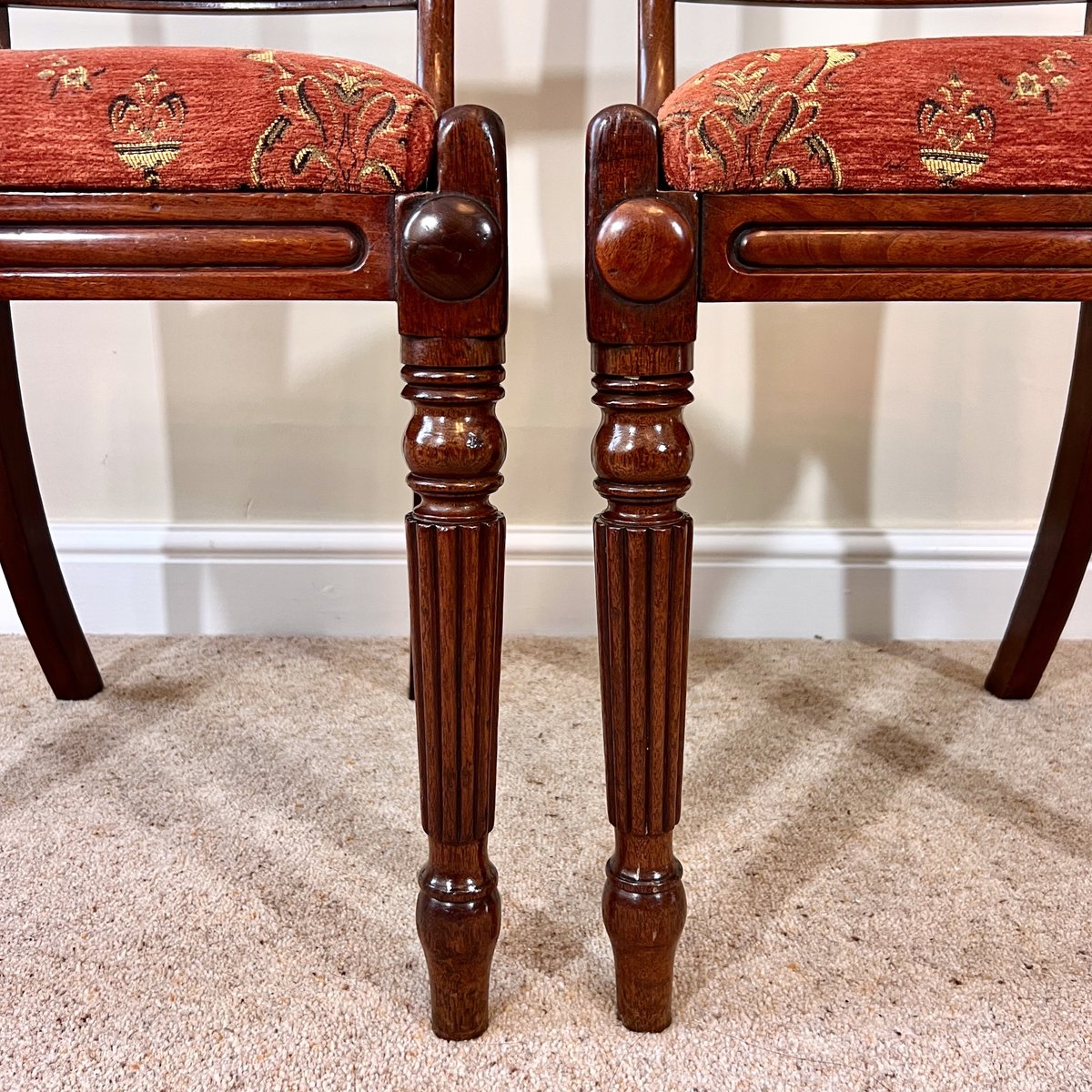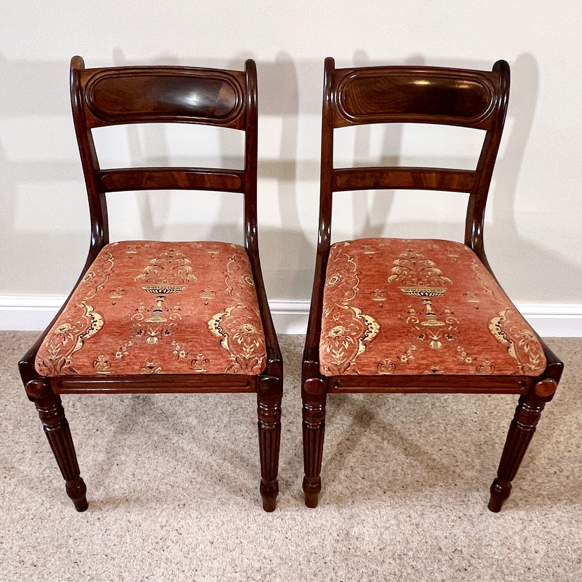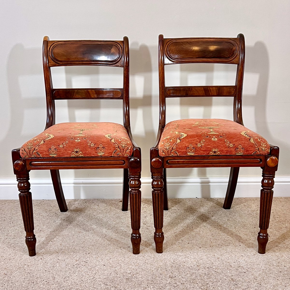 Antique English Regency Mahogany Bar Back Chairs, 1820s, Set of 2