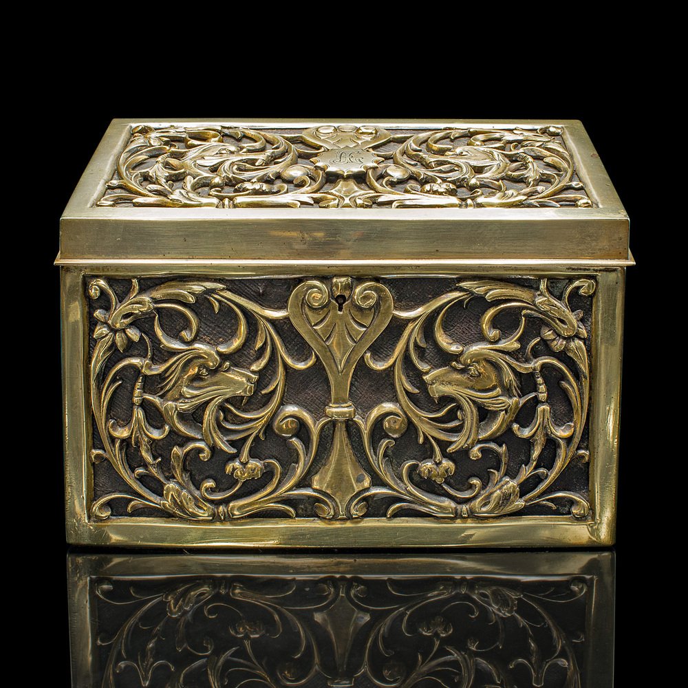 Antique English Stationery Box in Brass, 1880