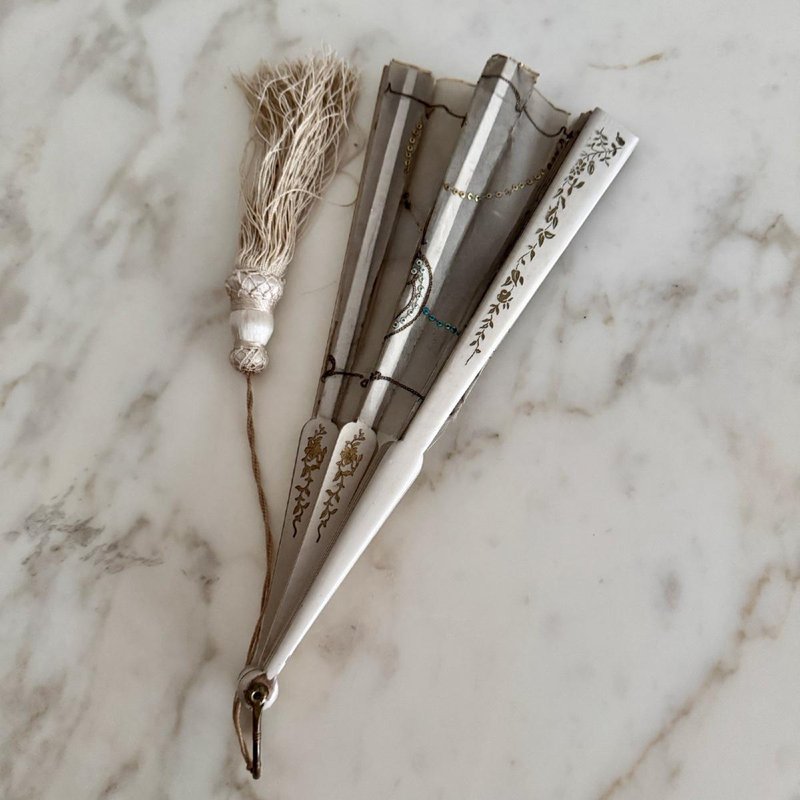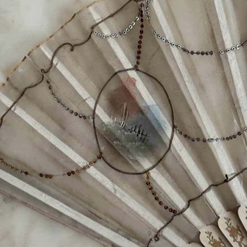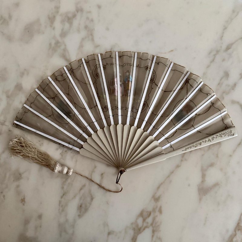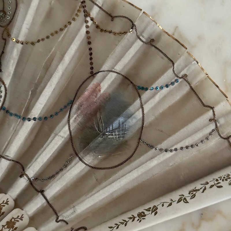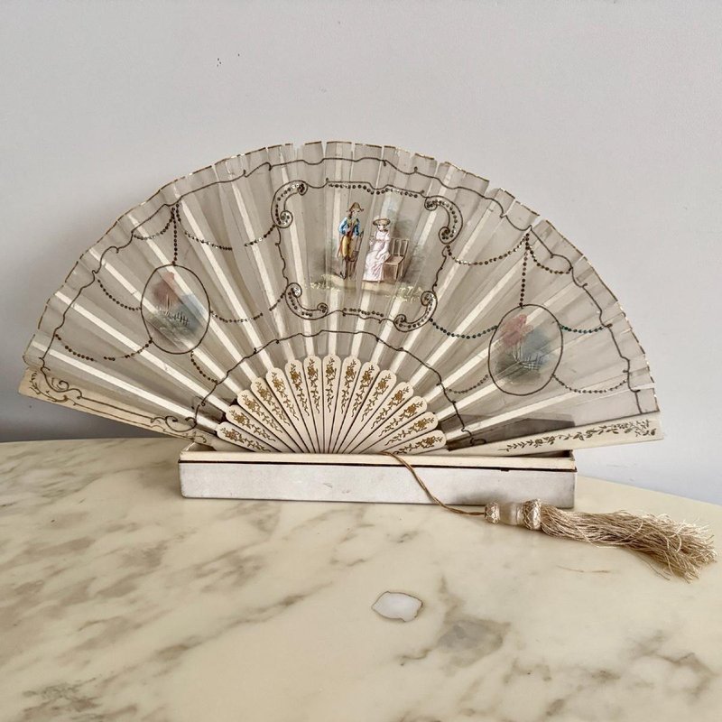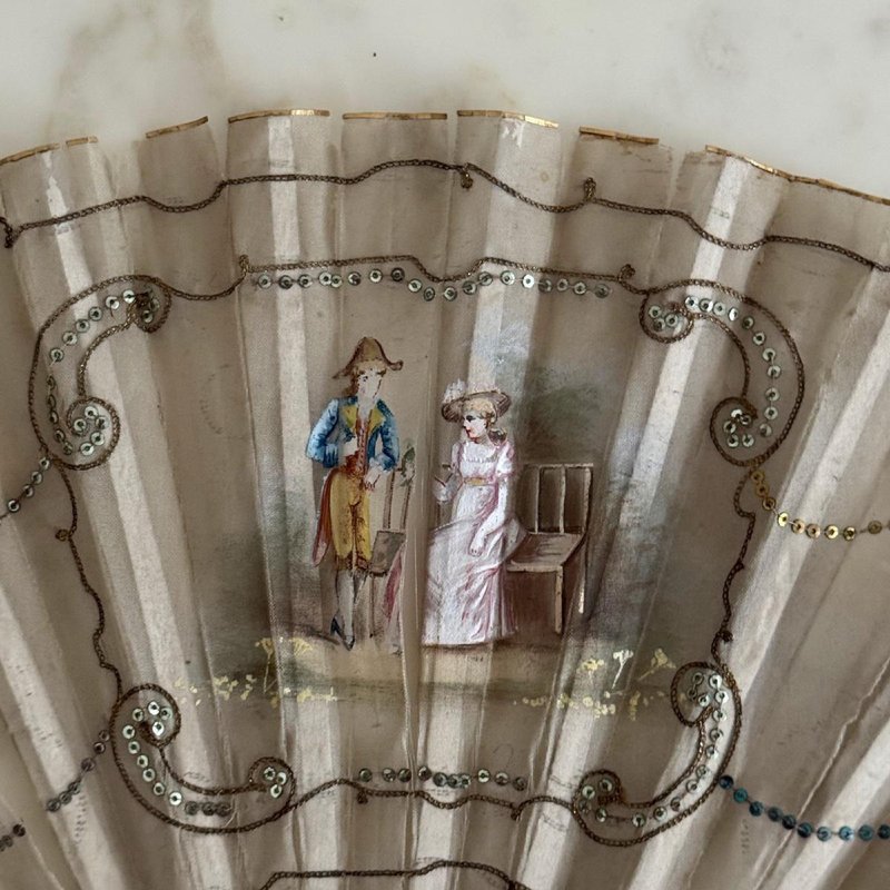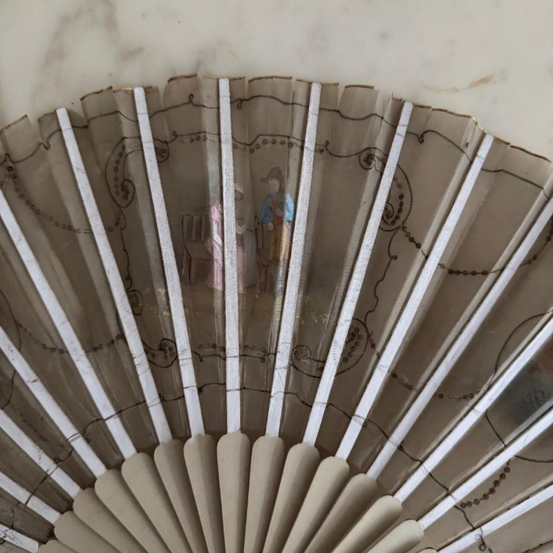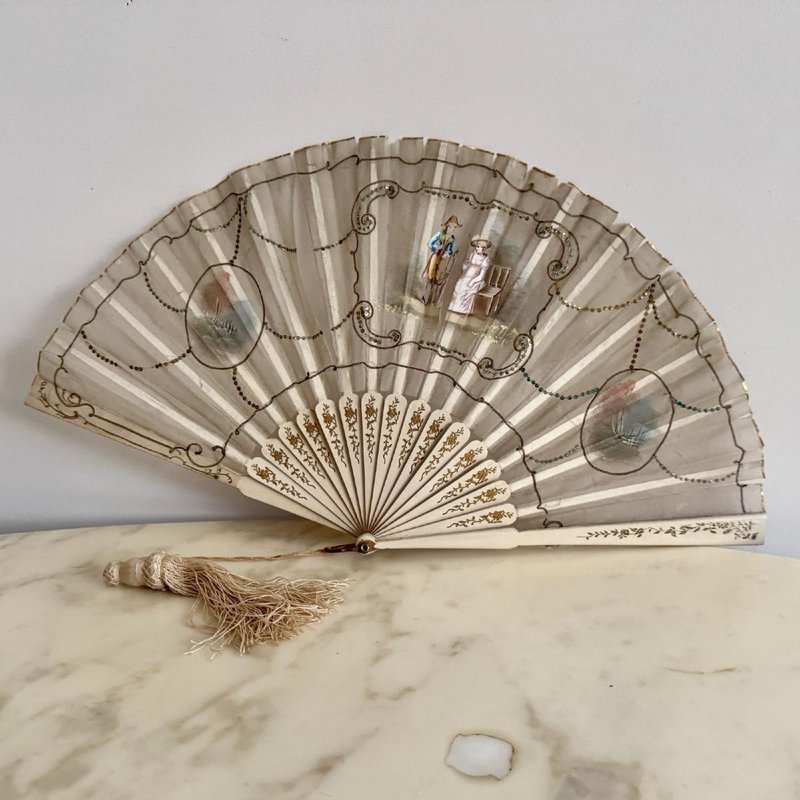Antique Fan with Hand-Painted Romantic Decoration, 1800s