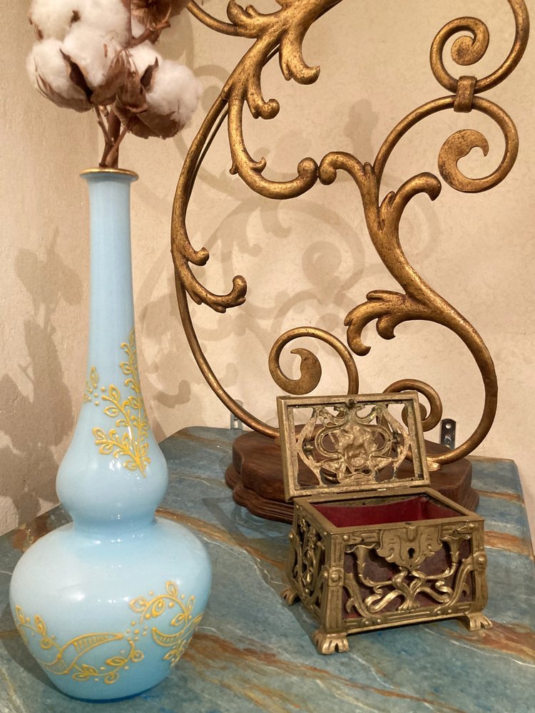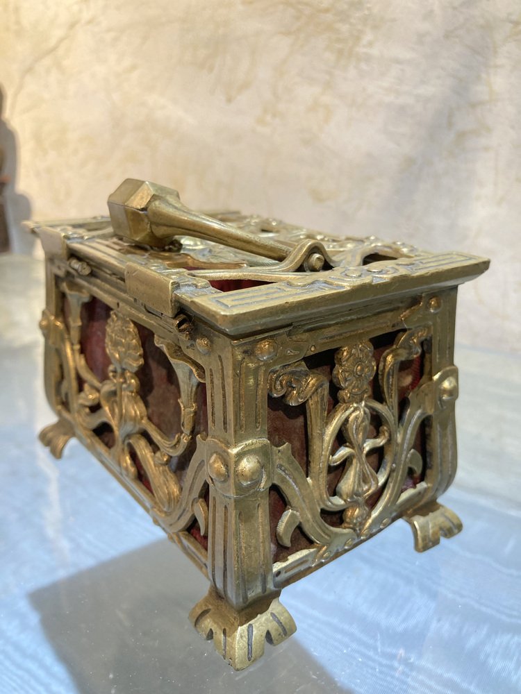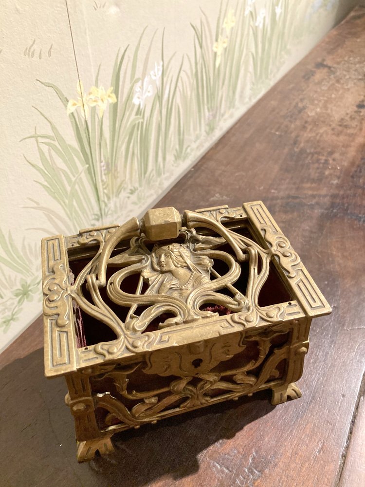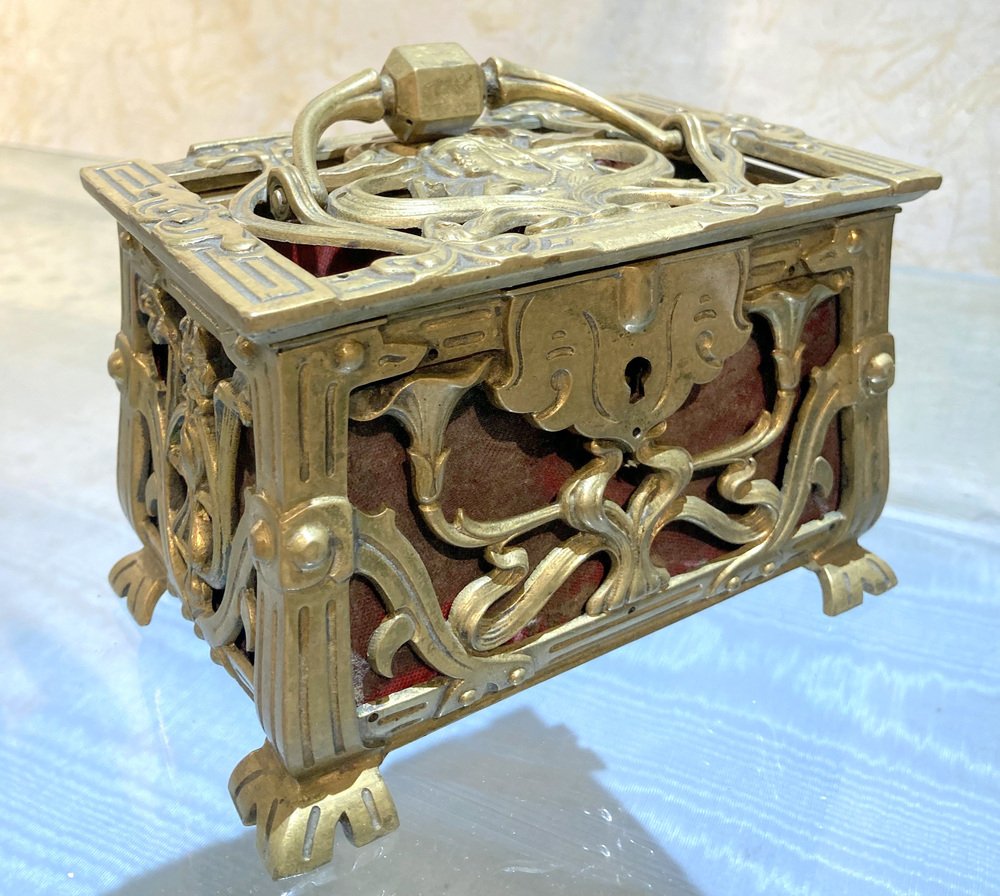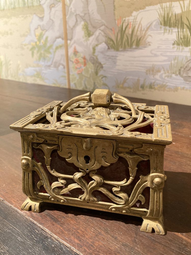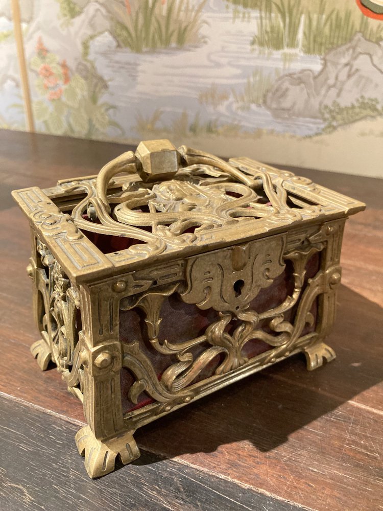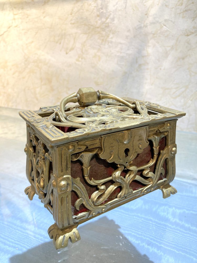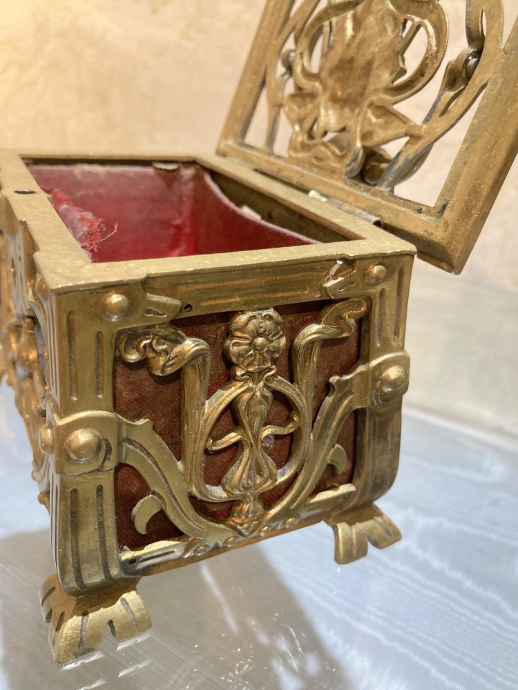 Antique French Art Nouveau Pierced Gilt Bronze Jewelry Box, 1880s