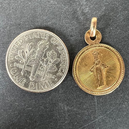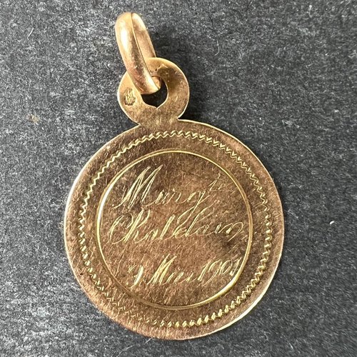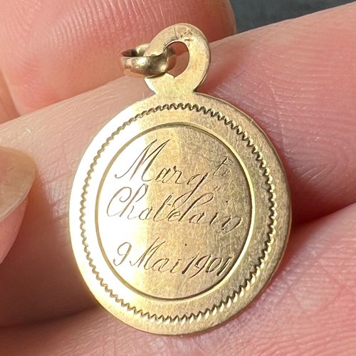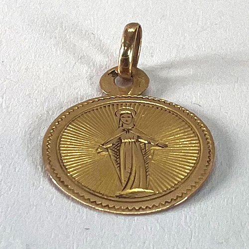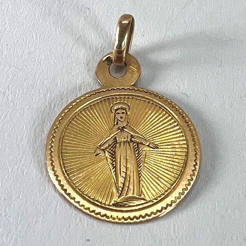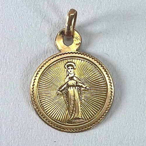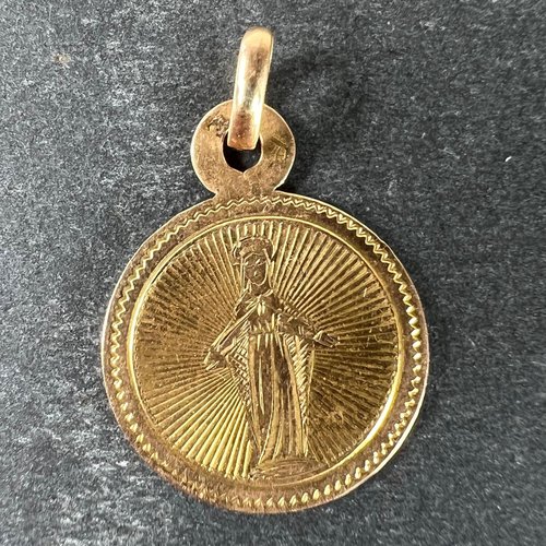 Antique French Virgin Mary 18k Yellow Gold Charm Medal Pendant, 1890s