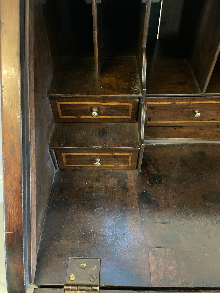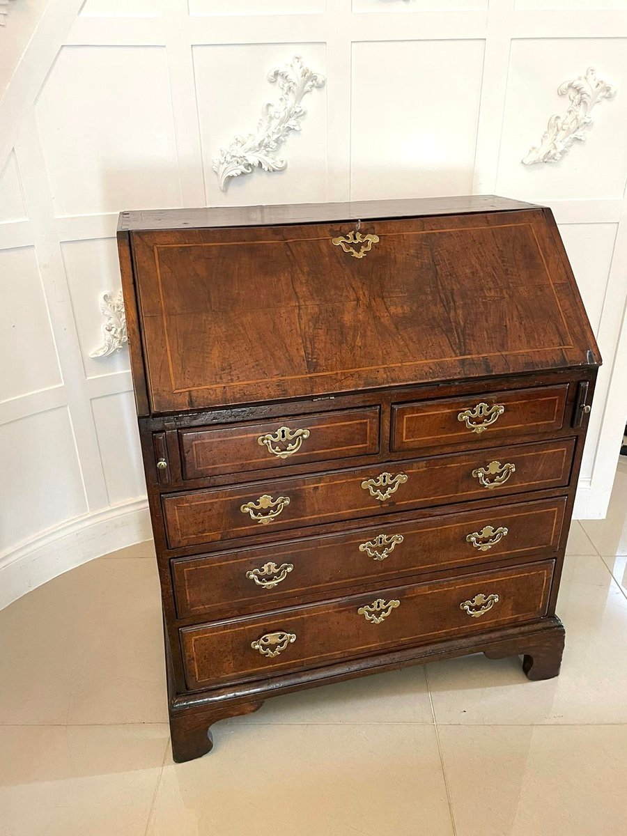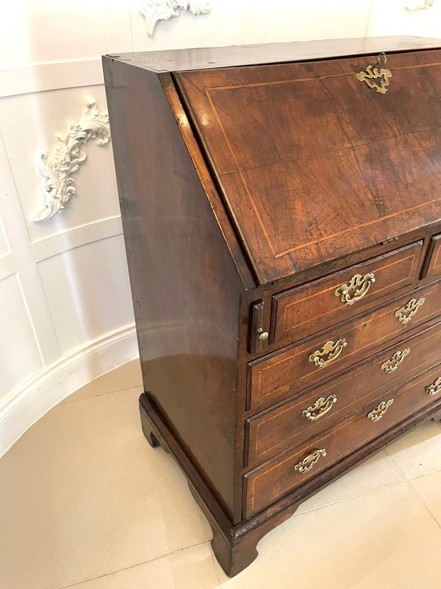 Antique George I Figured Walnut Bureau with Original Handles , 1720