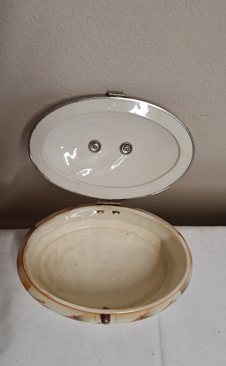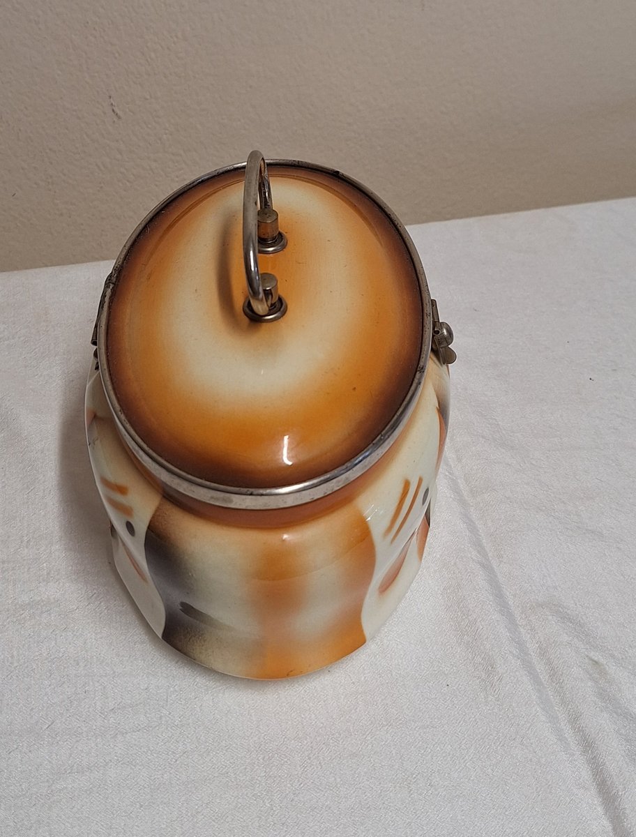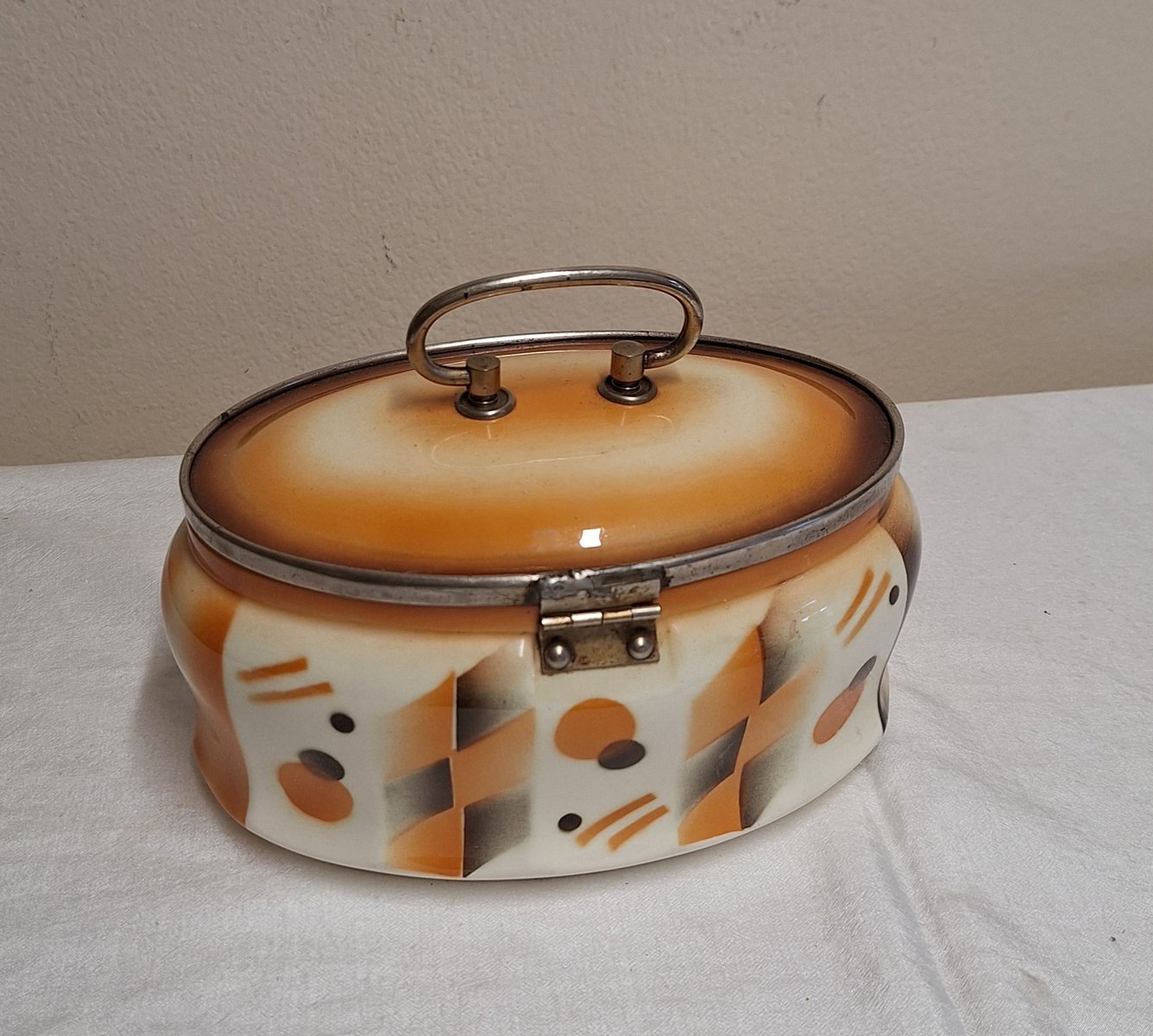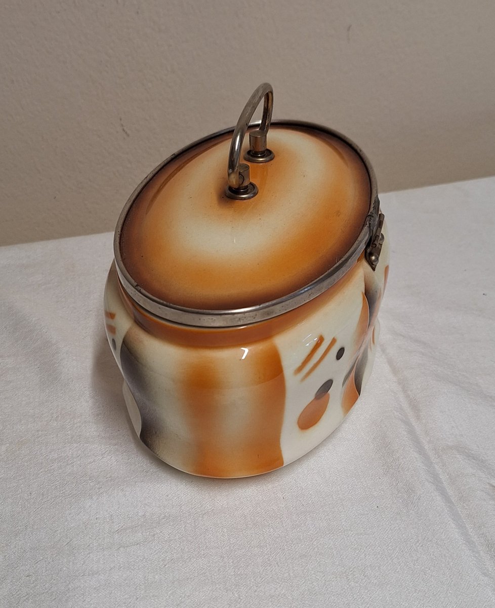 Antique German Art Deco Oval Lidded Cookie Jar, 1920s