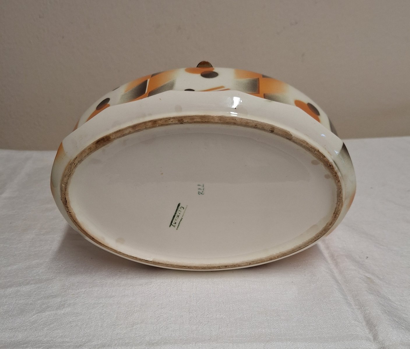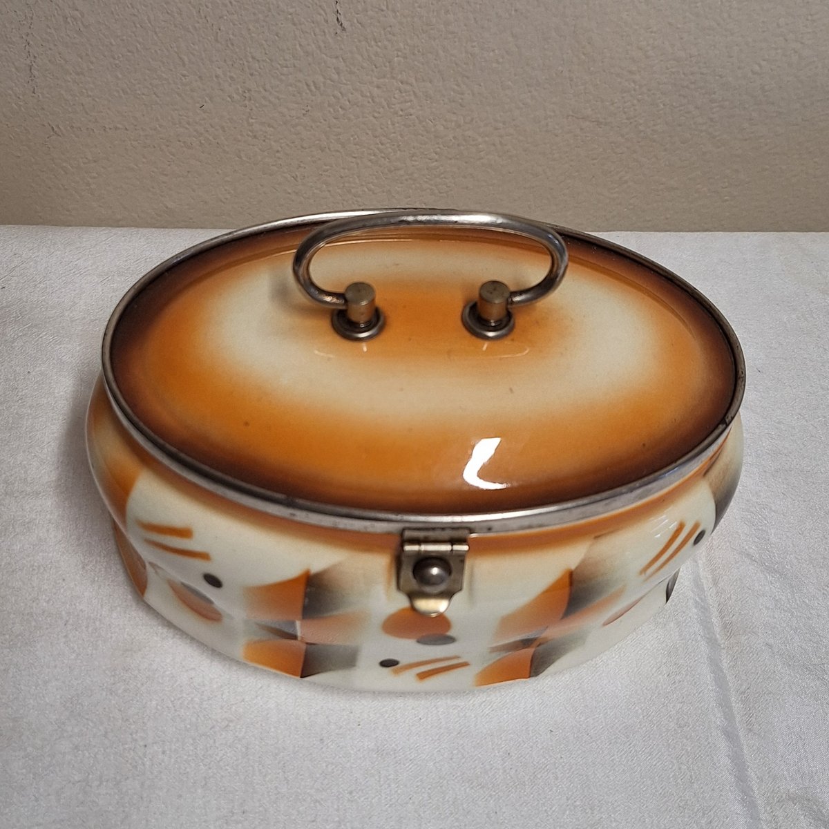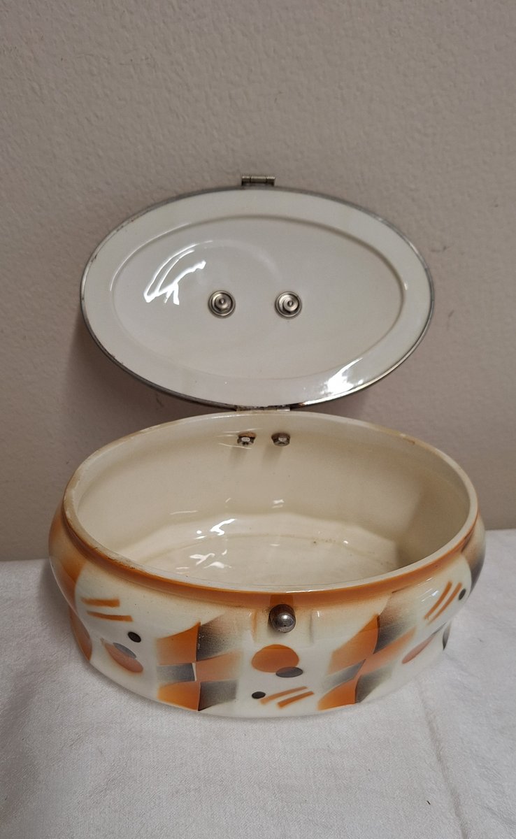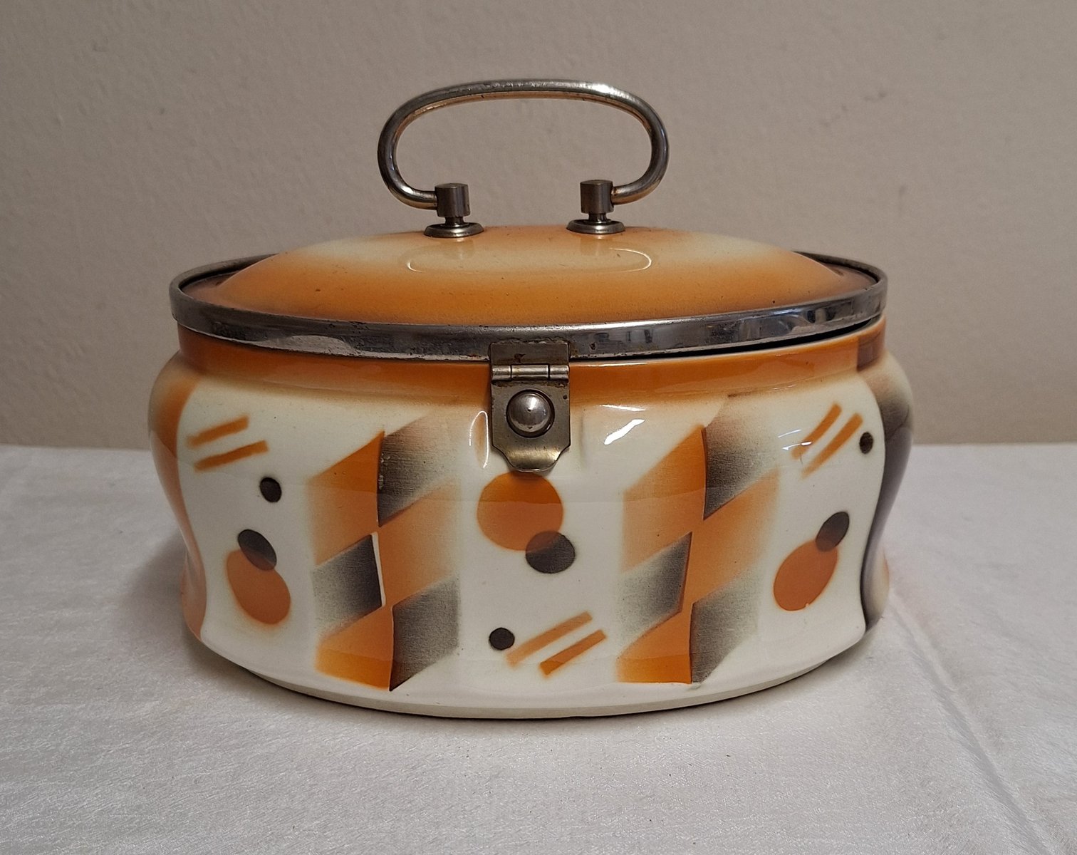 Antique German Art Deco Oval Lidded Cookie Jar, 1920s