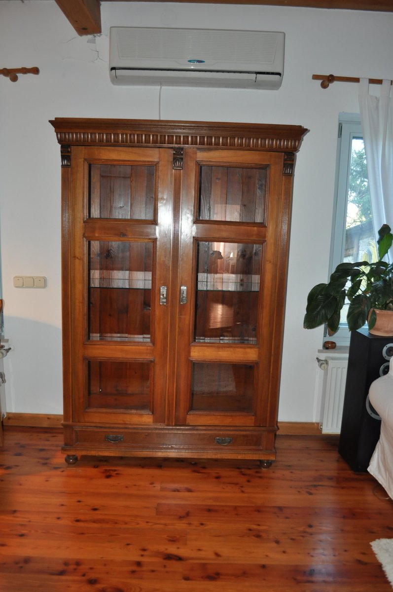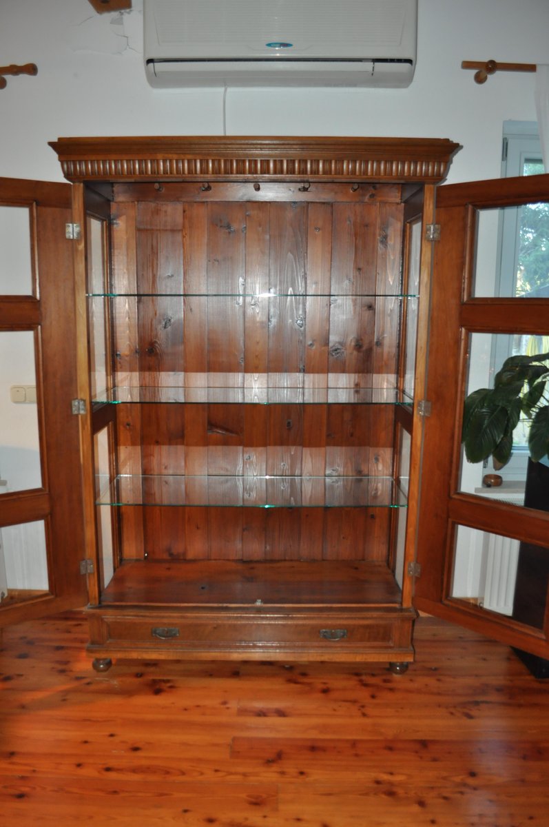 Antique Hungarian Glass and Wood Cabinet