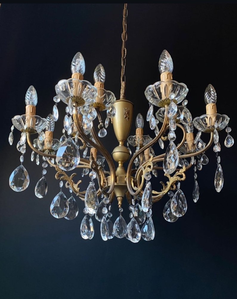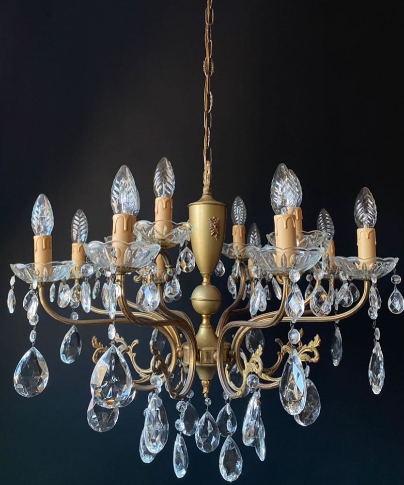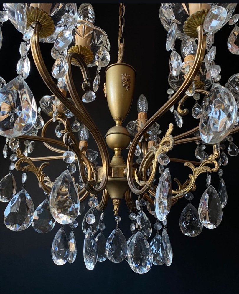Antique Italian Chandelier with Crystal Pendants, 1940s