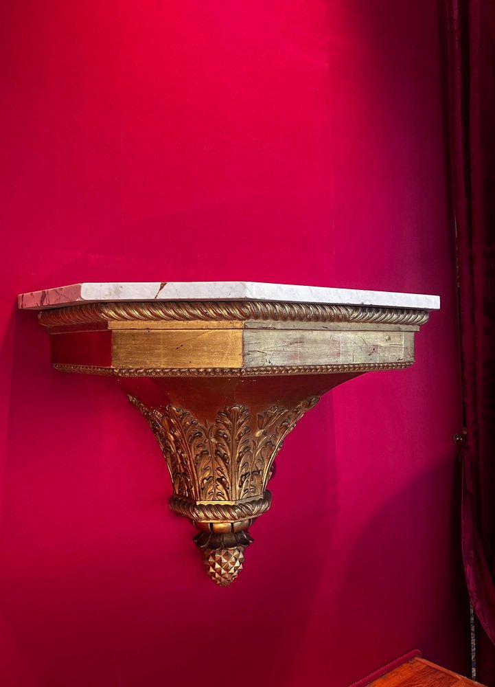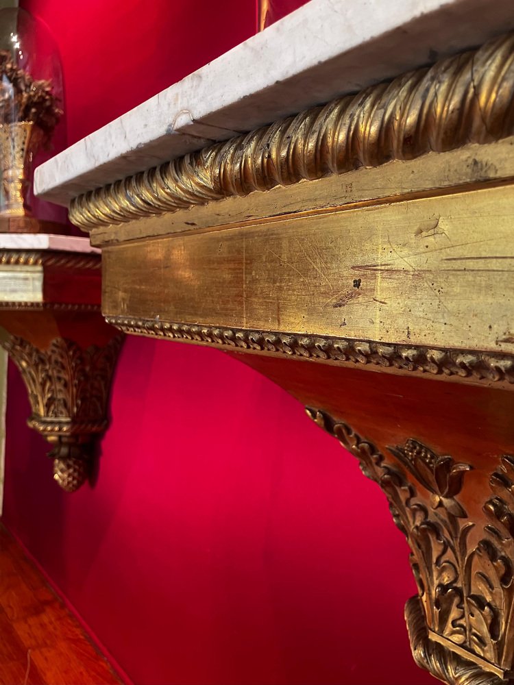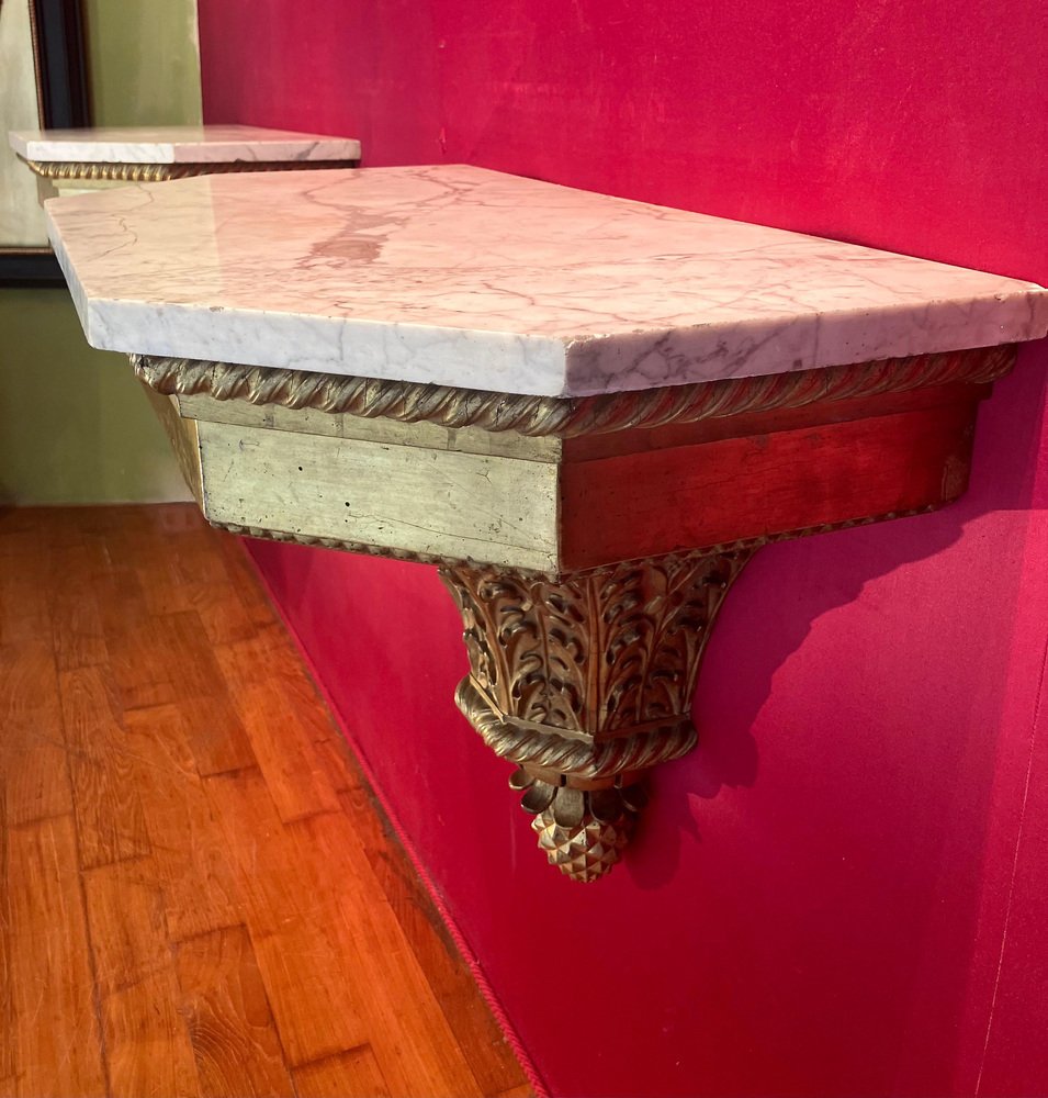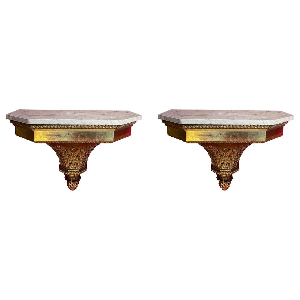 Antique Italian Louis XVI Hand Carved and Giltwood Wall Mounted Consoles, Set of 2