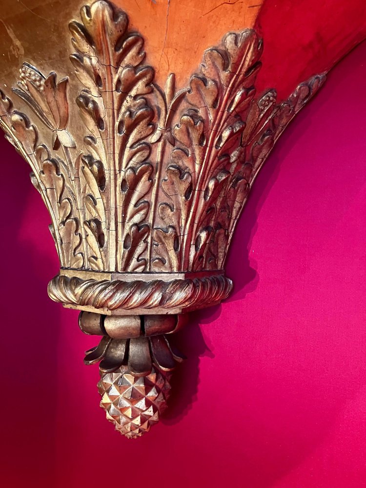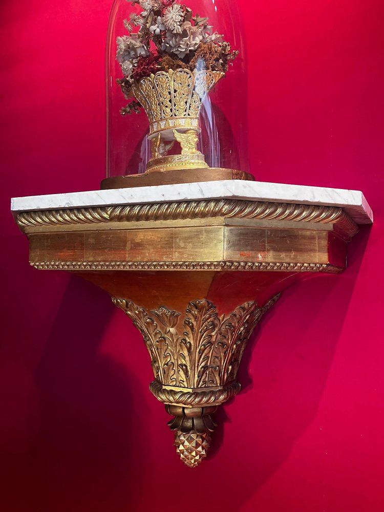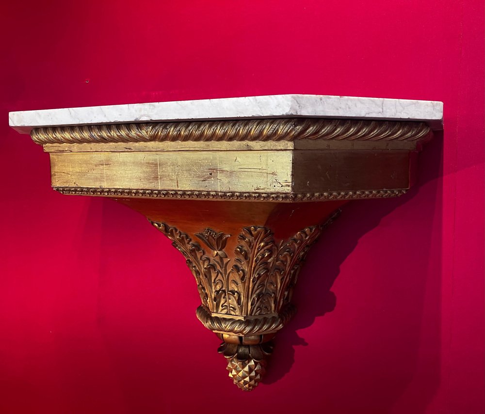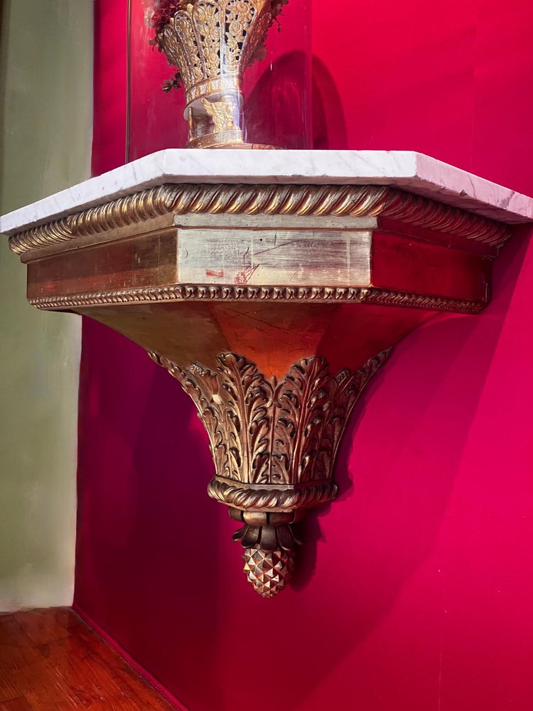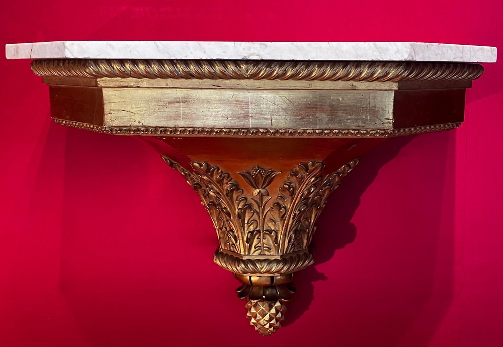 Antique Italian Louis XVI Hand Carved and Giltwood Wall Mounted Consoles, Set of 2
