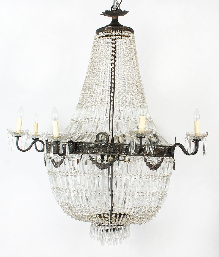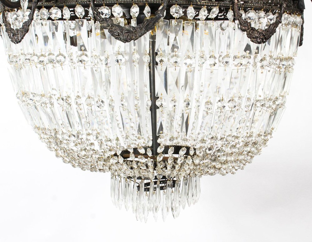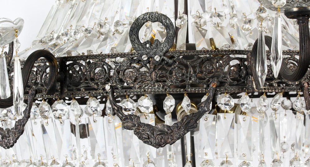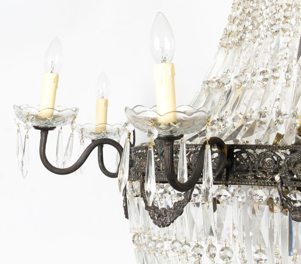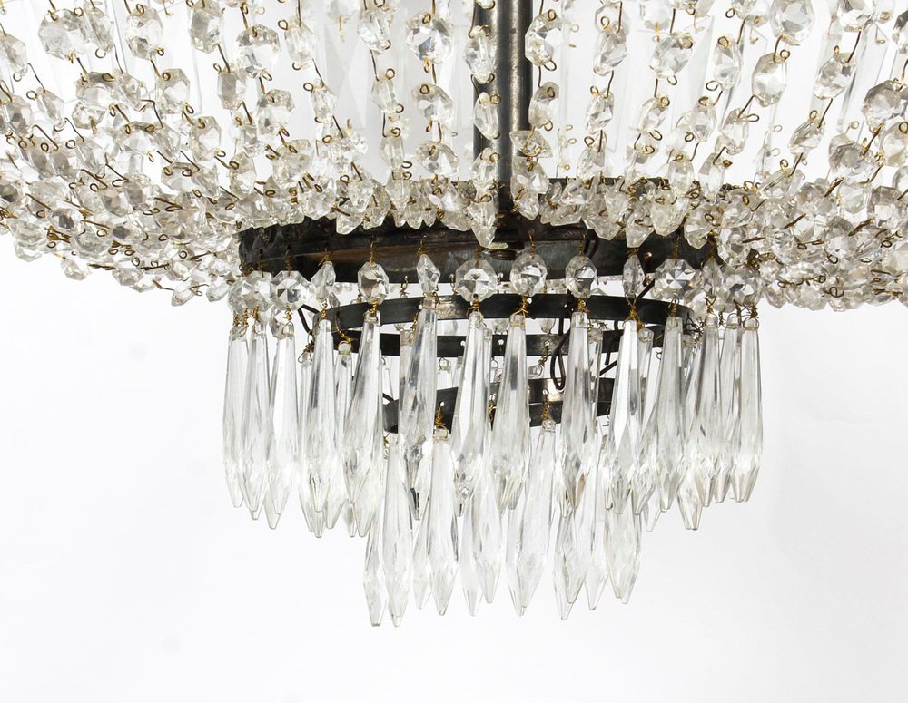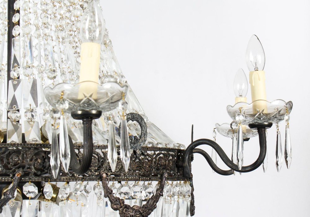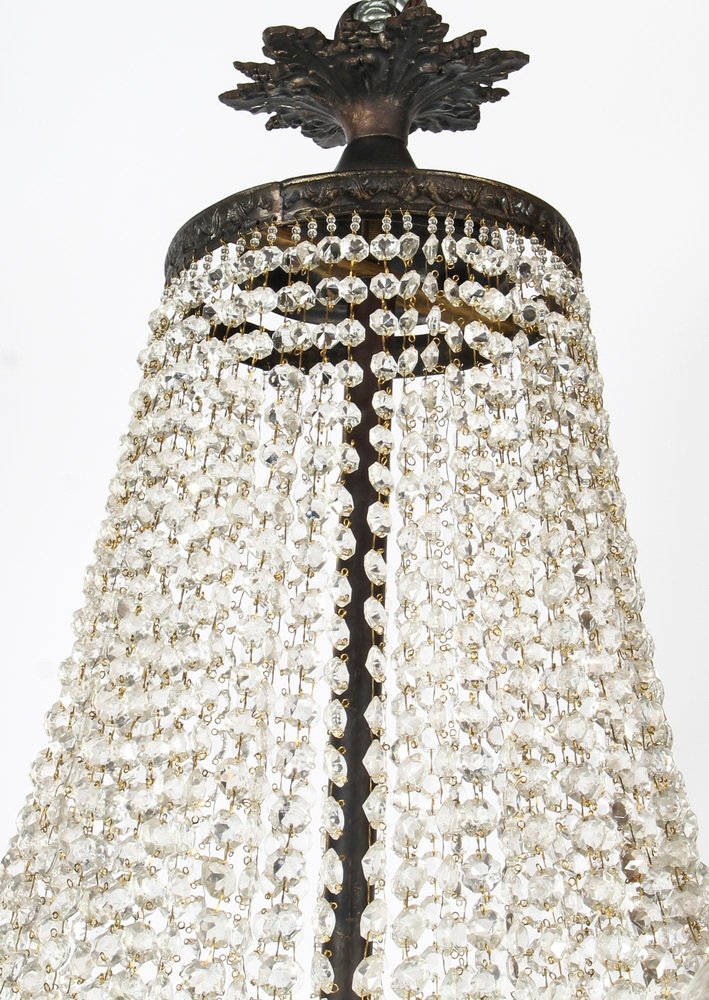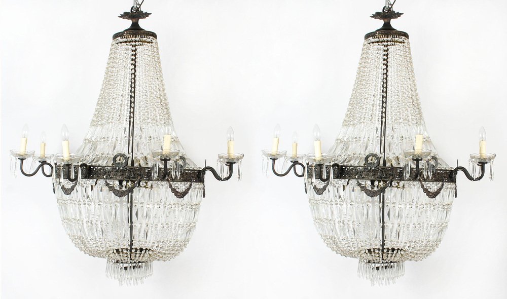 Antique Louis Revival 20 Light Ballroom Cut Crystal Tent Chandeliers, 1920, Set of 2