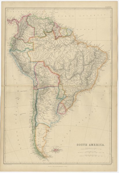 Antique Map of South America by W. G. Blackie, 1859