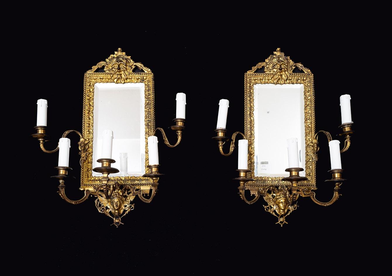 Antique Napoleon III Ventoline Mirrors in Gilded and Chiselled Bronze, France, 19th Century, Set of 2