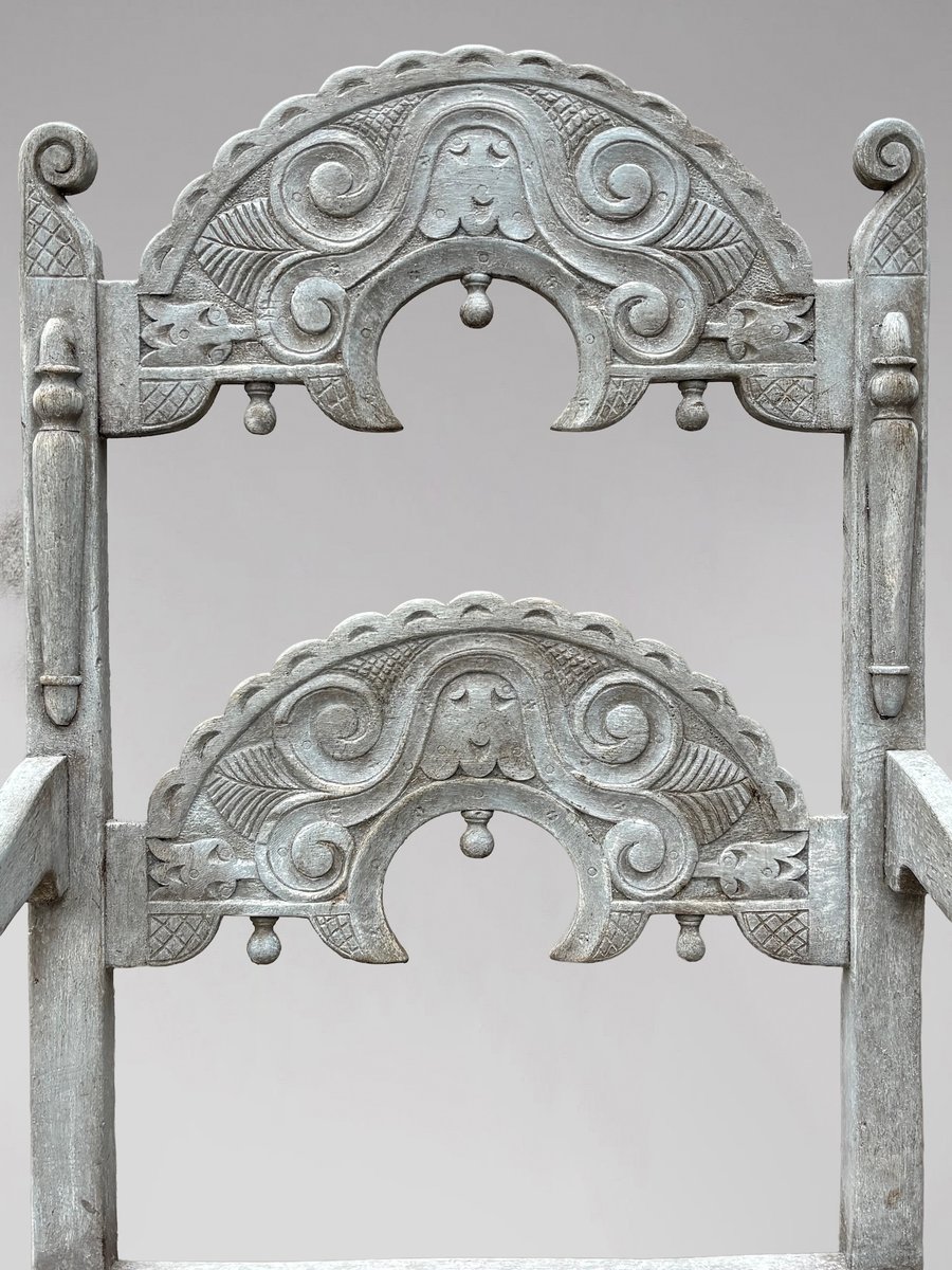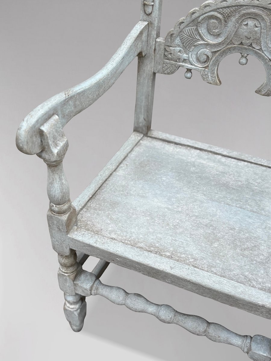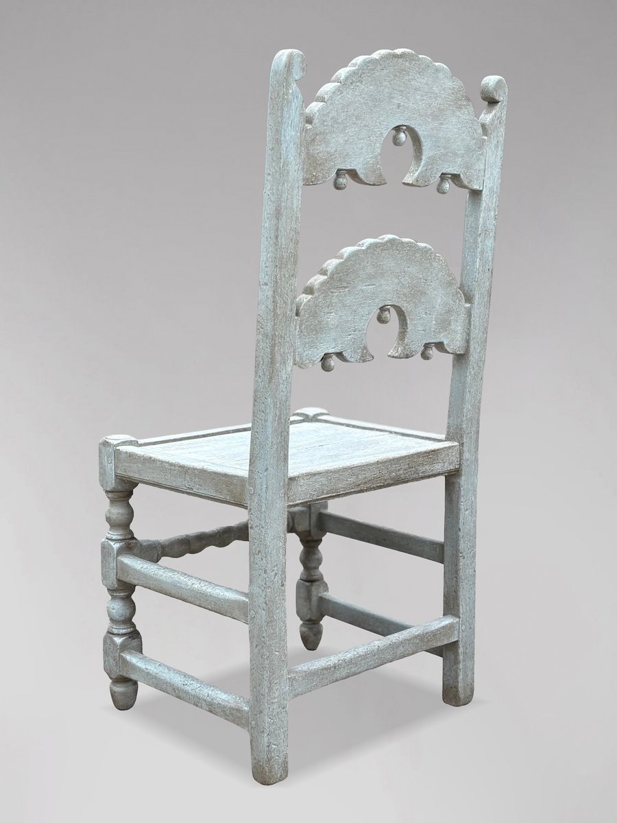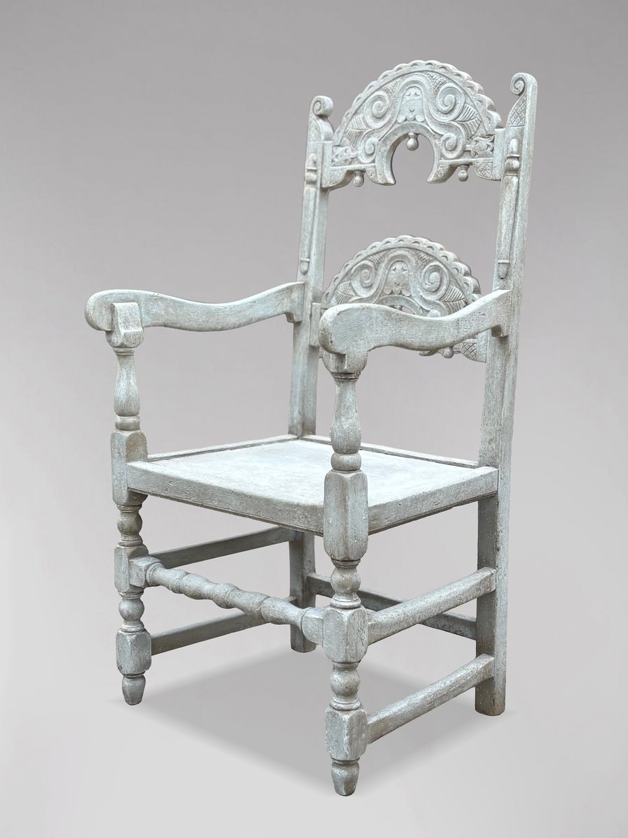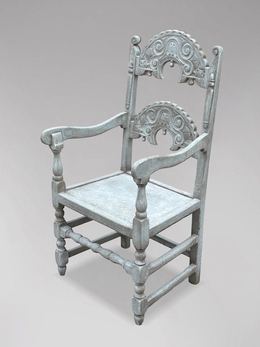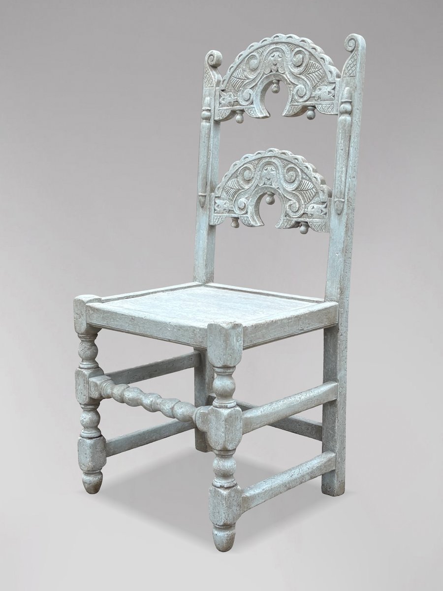 Antique Painted Carved Oak Derbyshire Dining Chairs, 1910, Set of 8