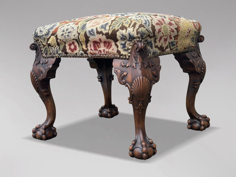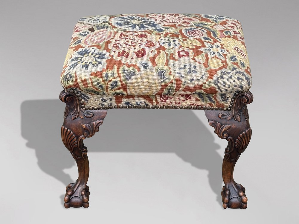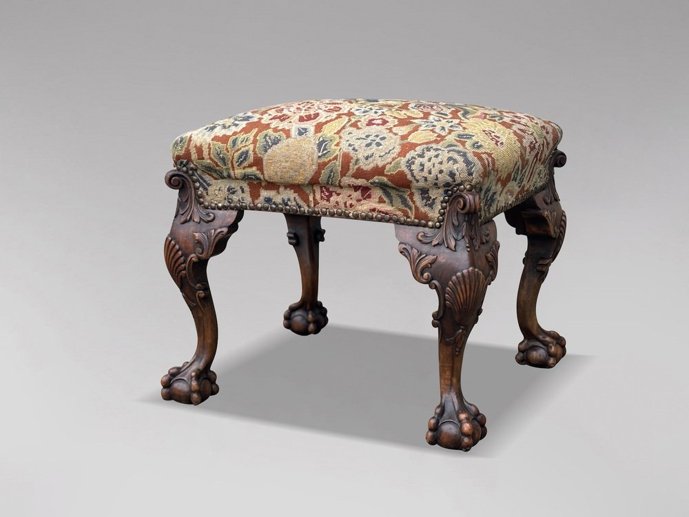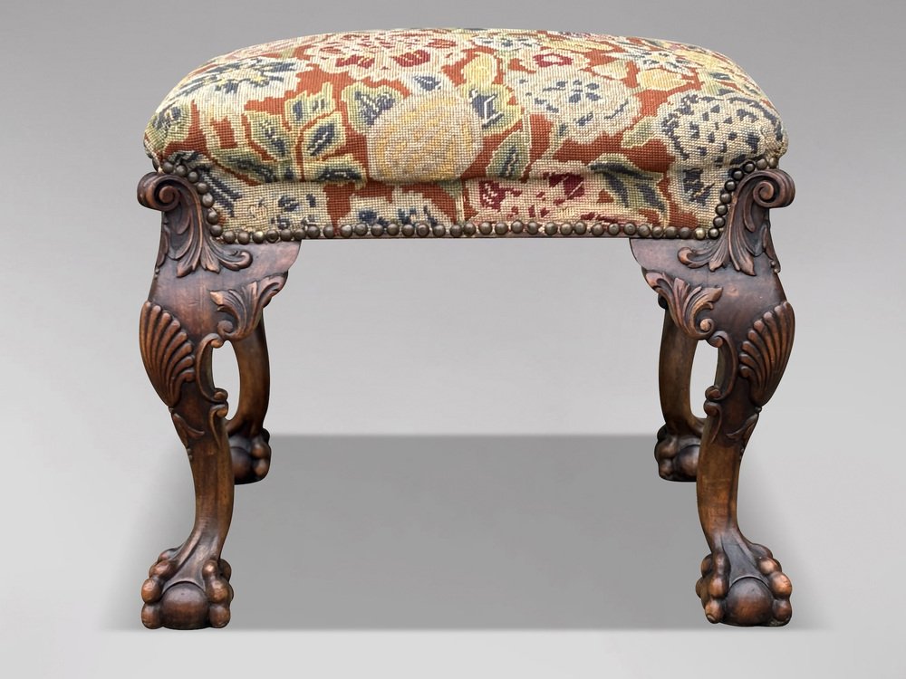 Antique Regency Carved Walnut Stool, 1820
