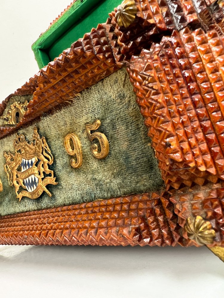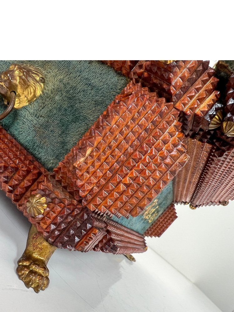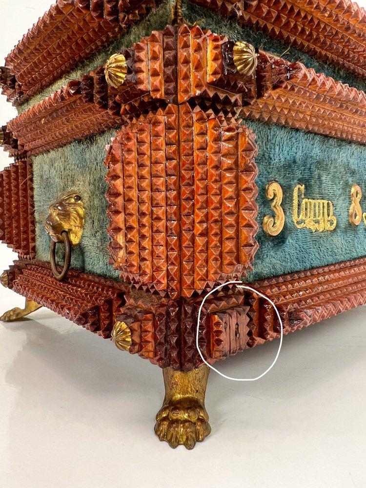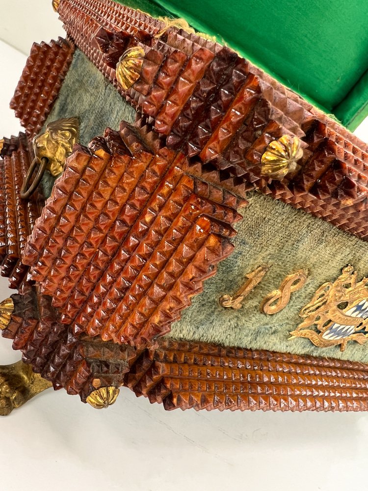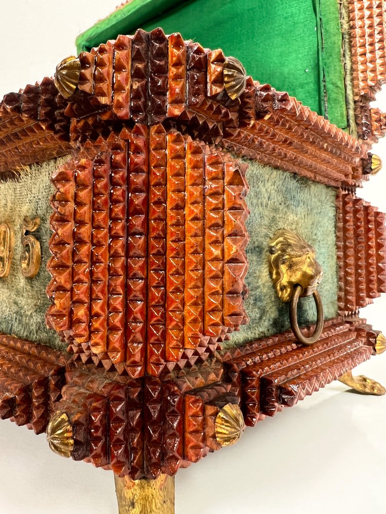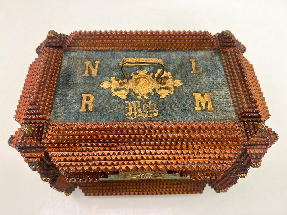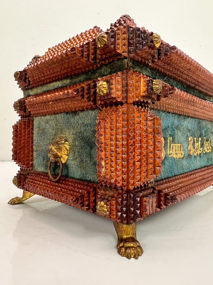 Antique Tramp Art Carved Wood Jewelry Box, Germany, 1895