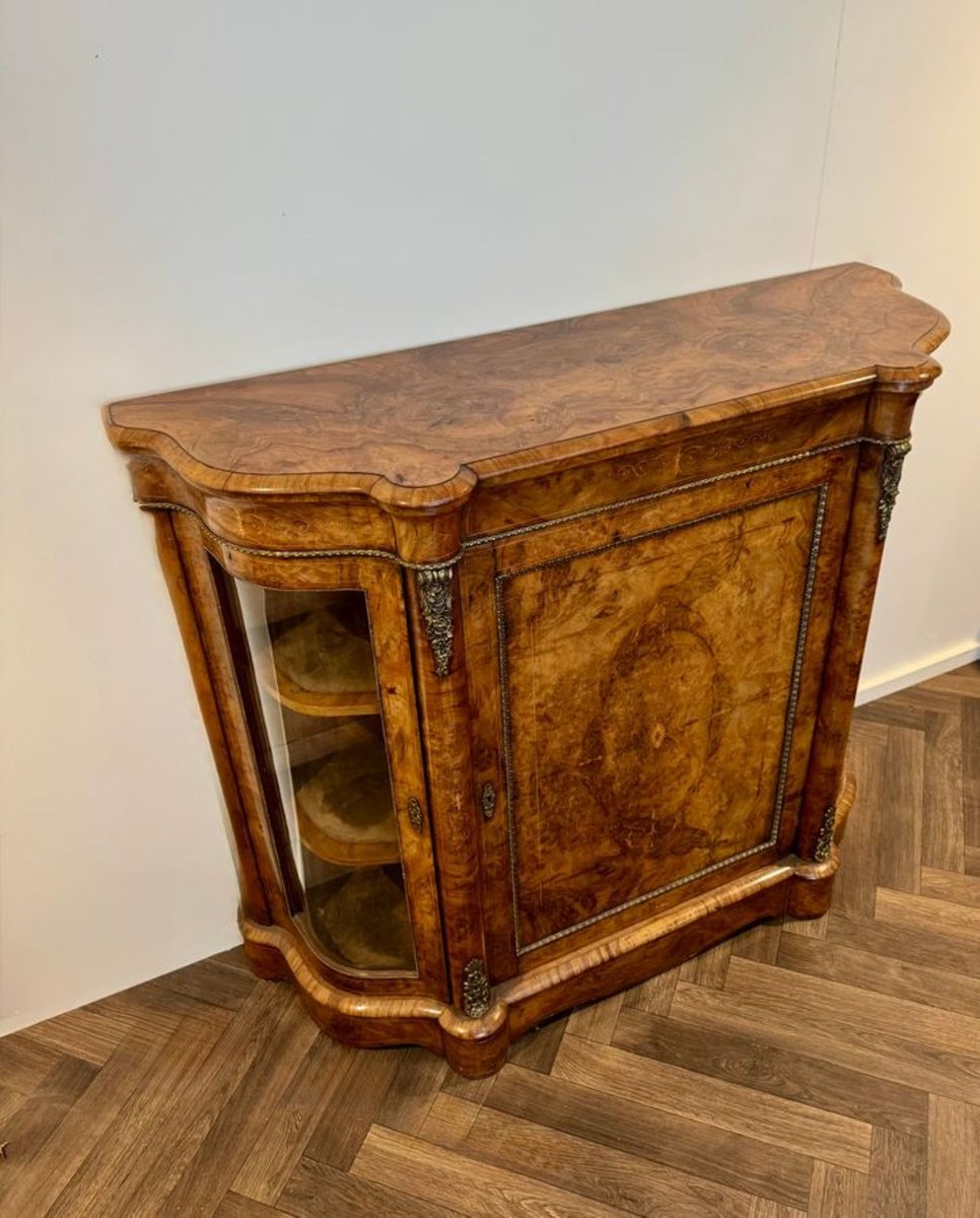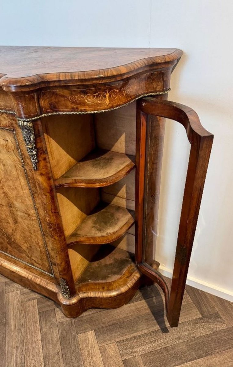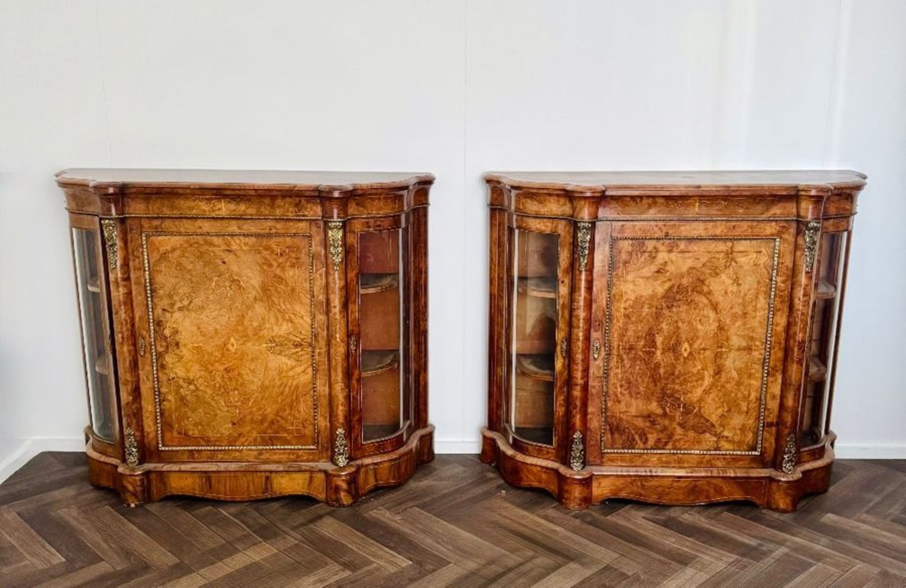 Antique Victorian Burr Walnut Side Cabinets, 1860, Set of 2
