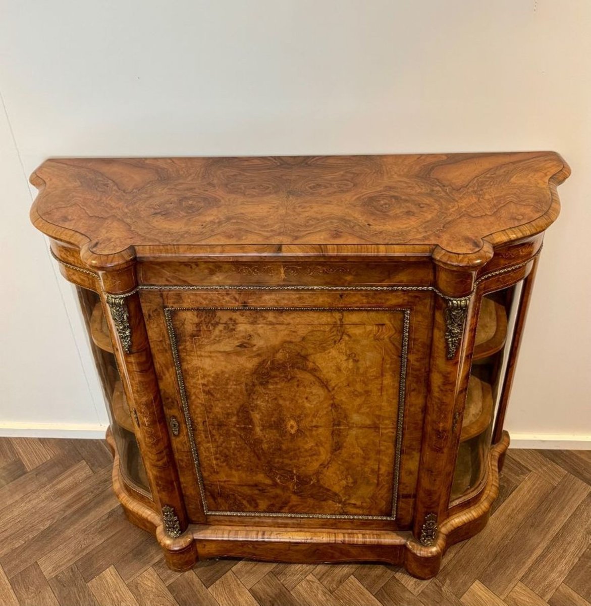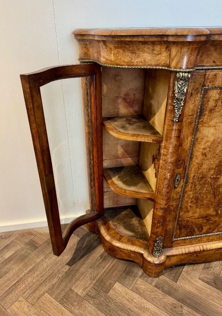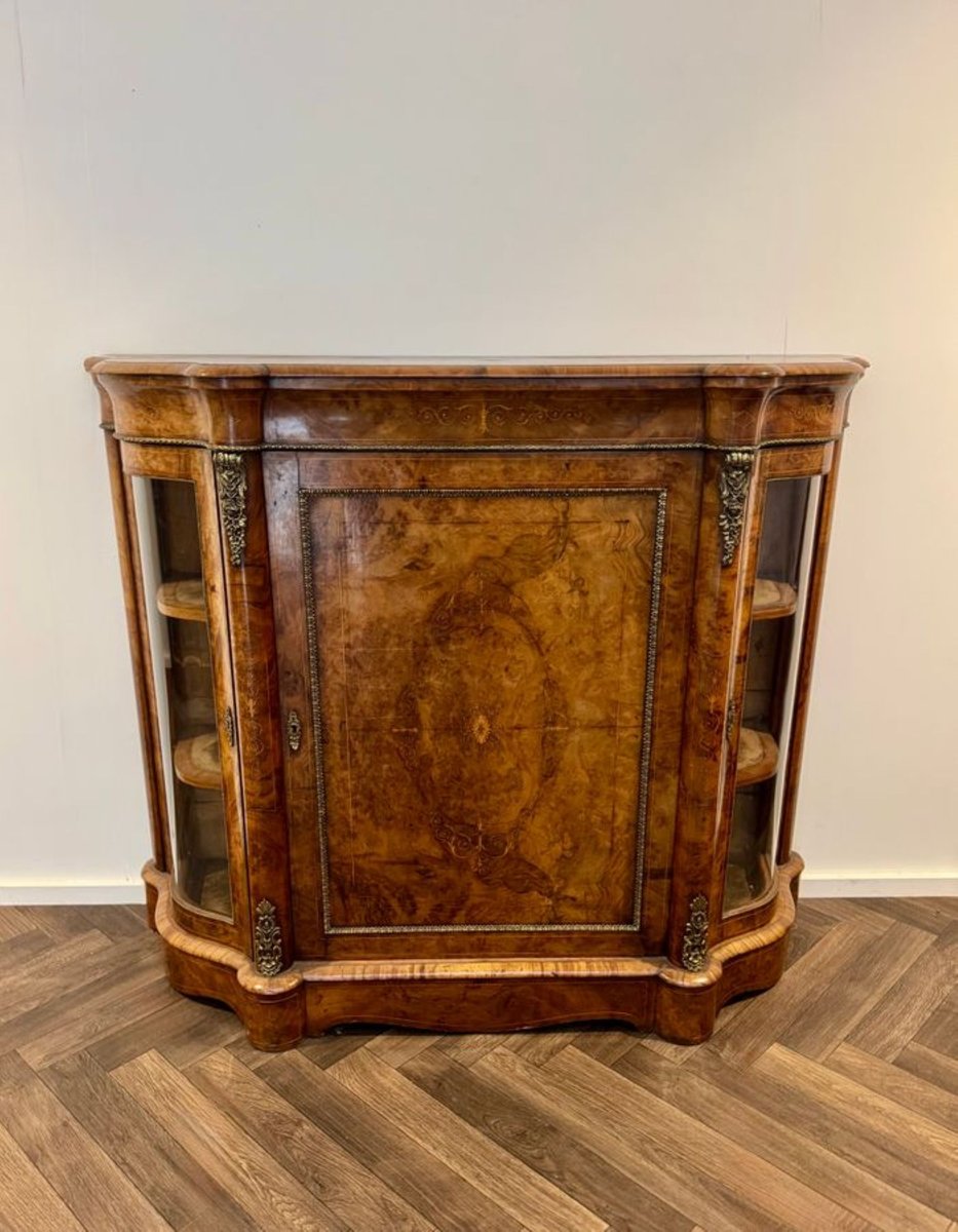 Antique Victorian Burr Walnut Side Cabinets, 1860, Set of 2