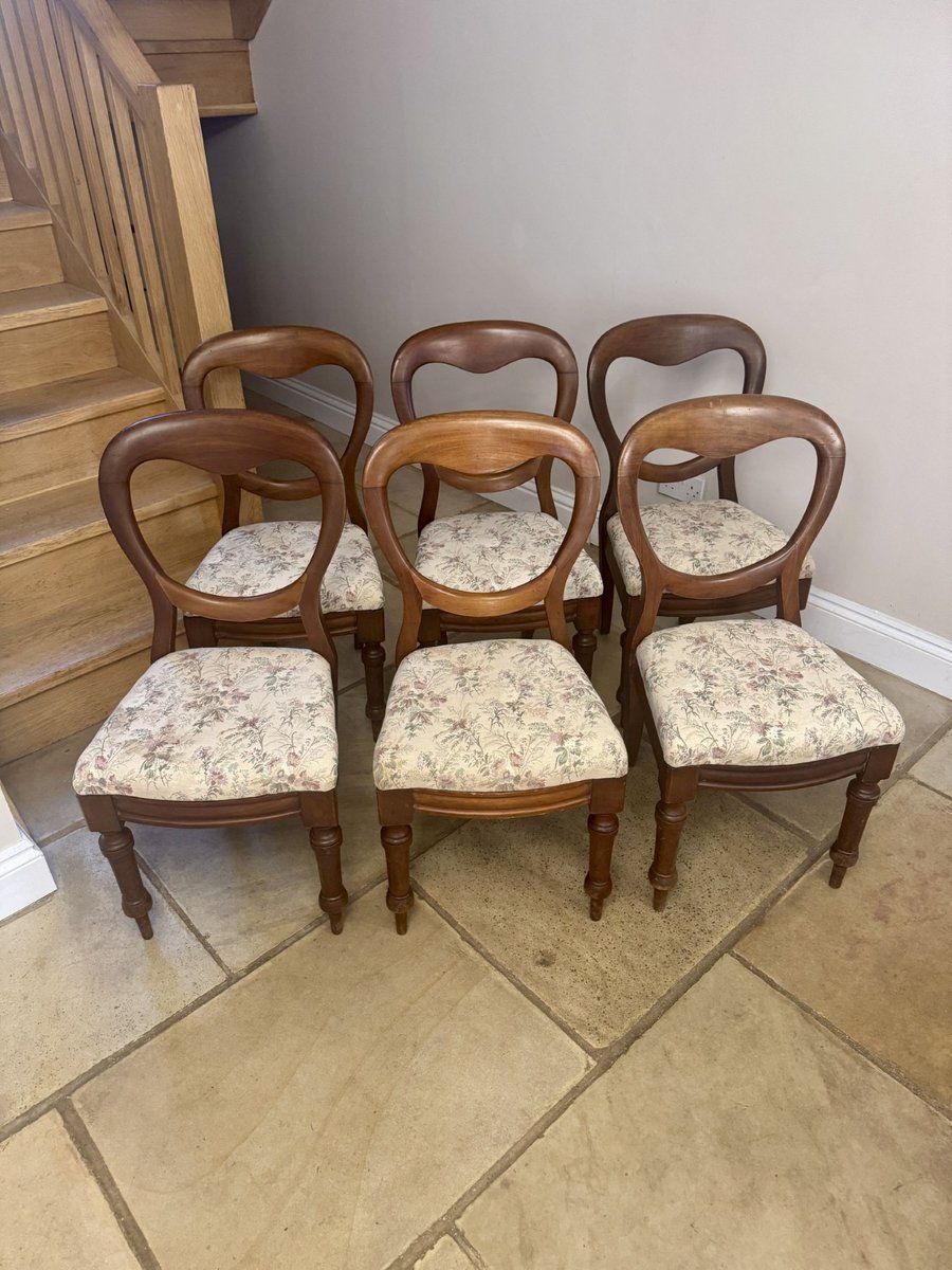 Antique Victorian Mahogany Balloon Back Dining Chairs, 1860, Set of 6