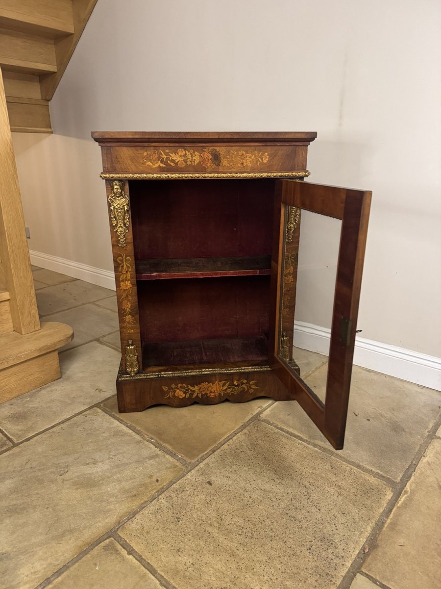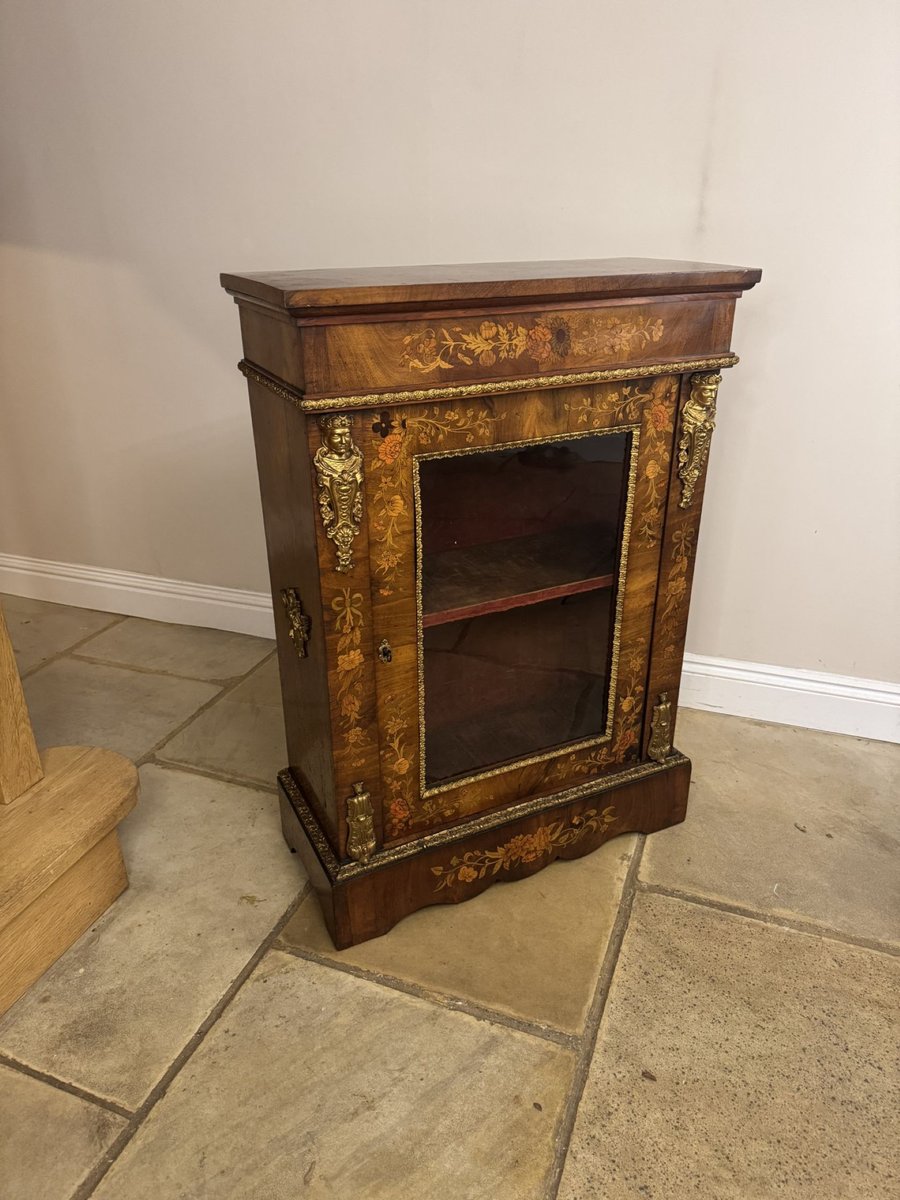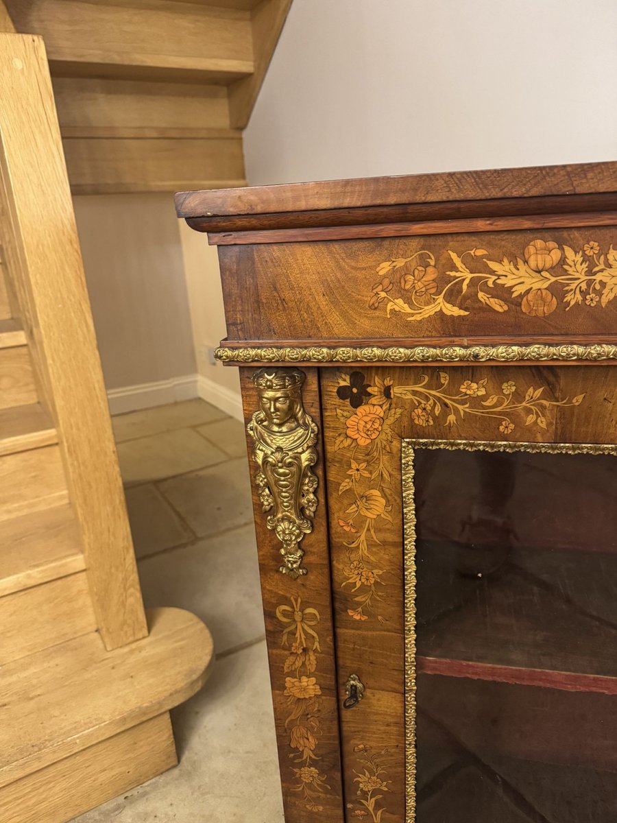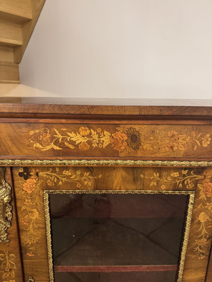 Antique Victorian Walnut Marquetry Inlaid Pier Cabinet, 1860