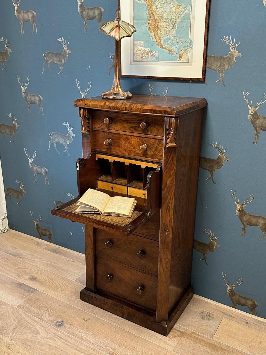 Antique Walnut Wellington Chest of Drawers with Secretary