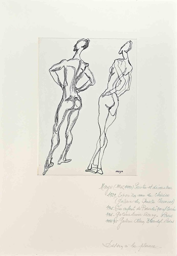 Antoine Mayo, Figure, Original Drawing, Mid 20th-Century
