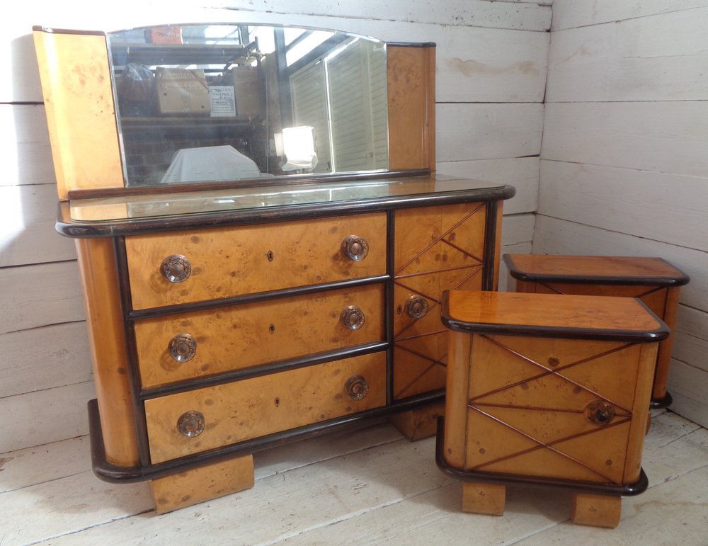 Art Deco Chest of Drawers with Mirror in the style of Osvaldo Borsani, 1940s, Set of 2