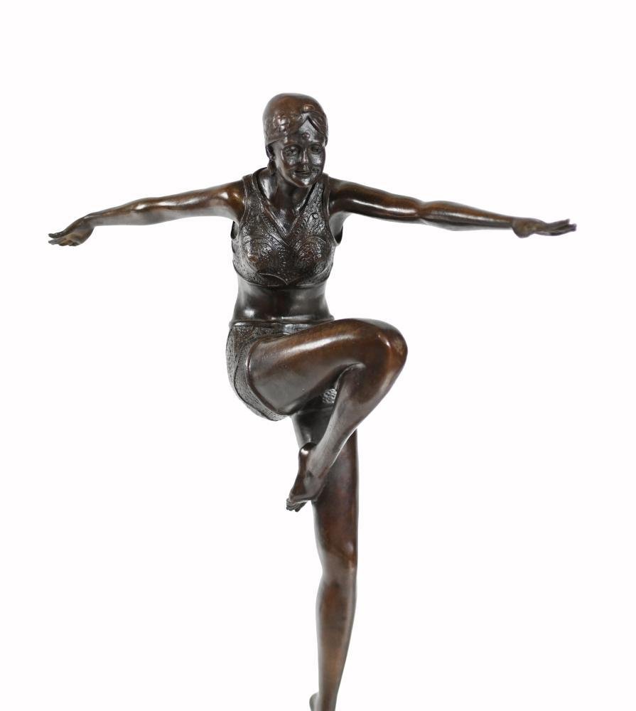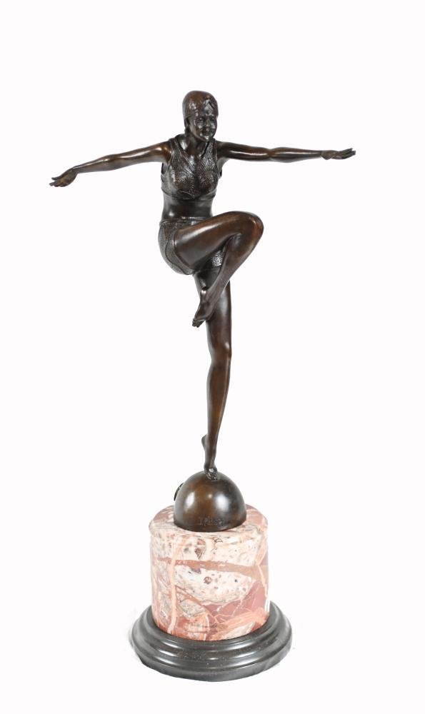 Art Deco Bronze Dancer Statue after J. Philippe Flapper, 1920s