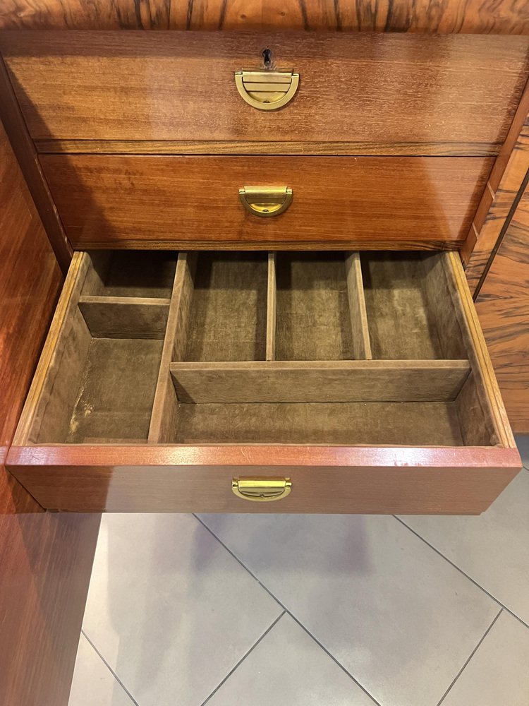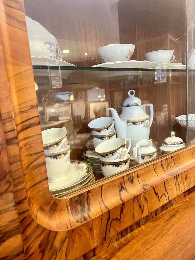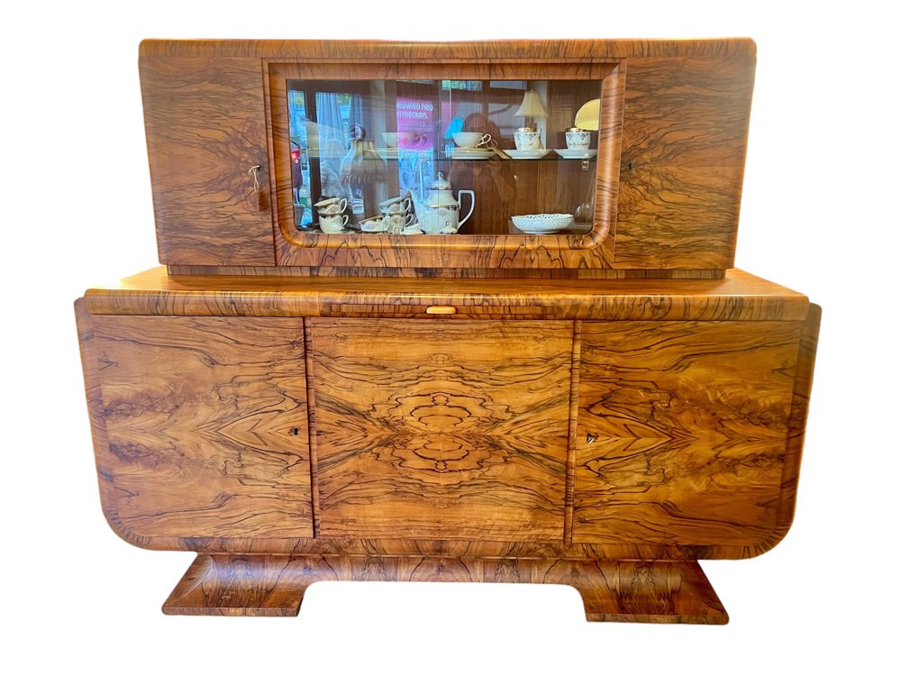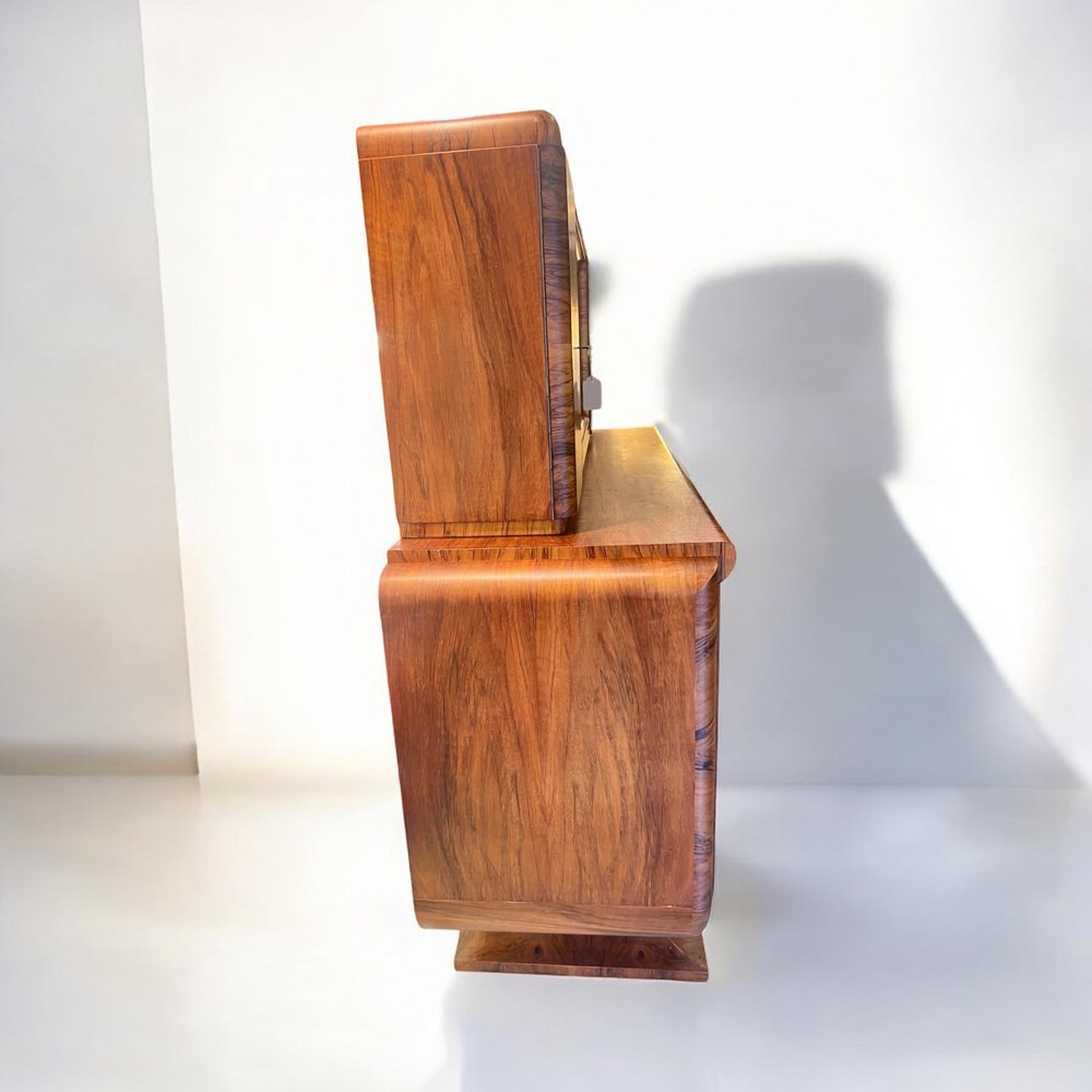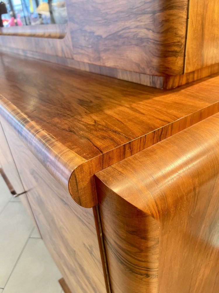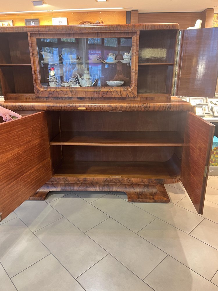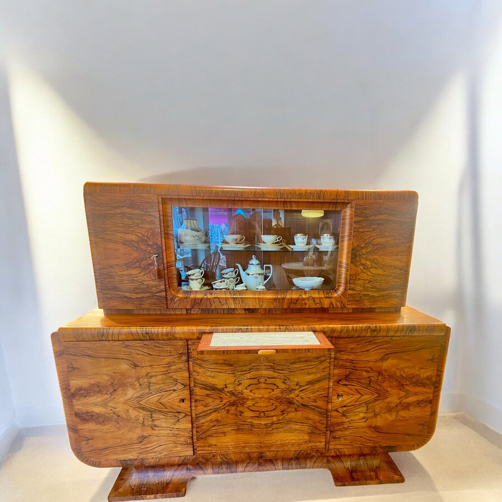 Art Deco Buffet with Olive Wood Veneer and Extendable Marble Worktop, 1922