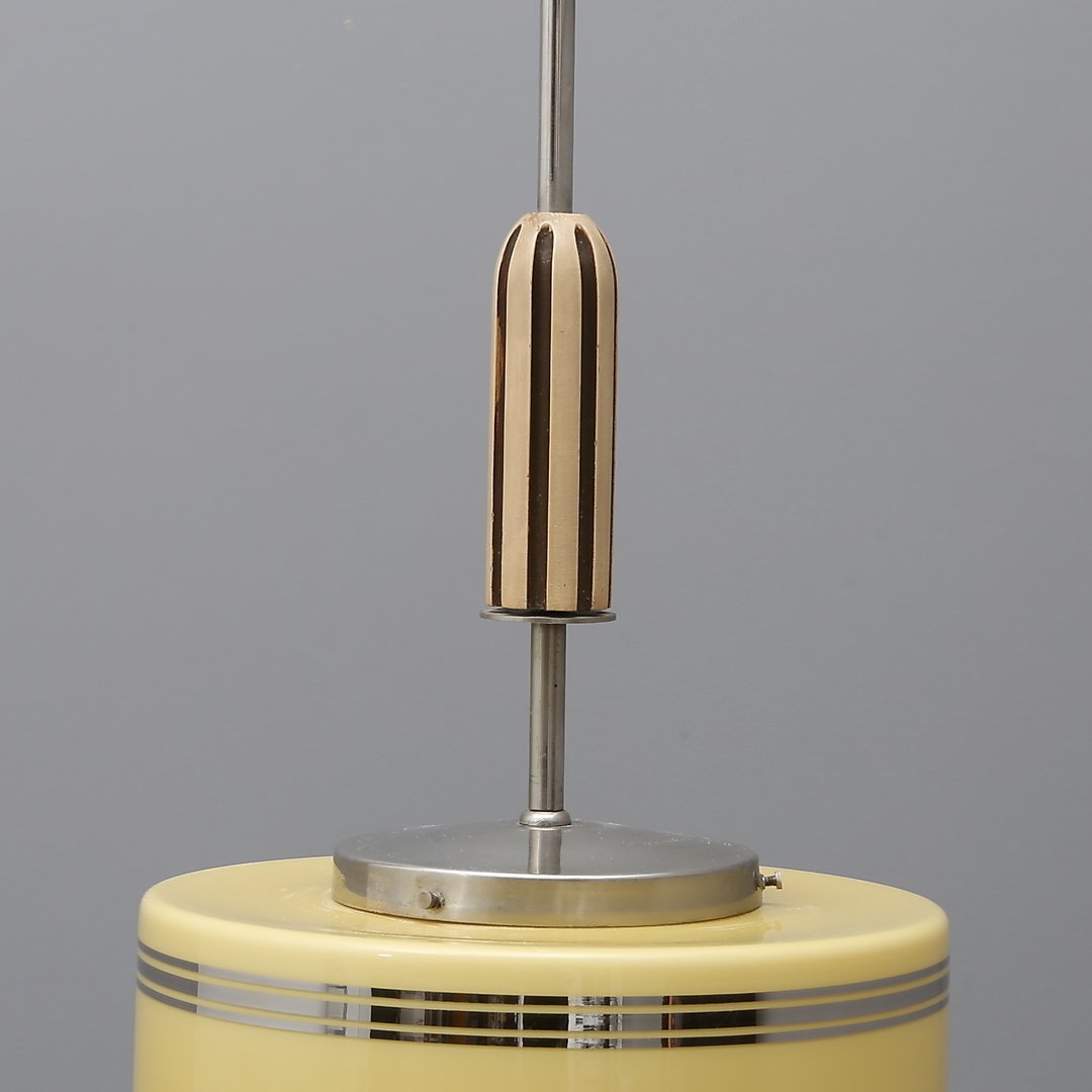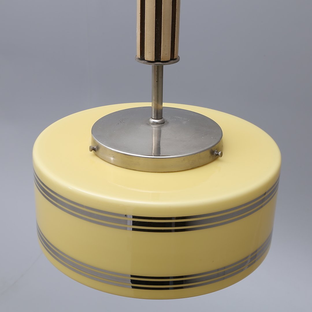 Art Deco Chrome and Wood Ceiling Lamp, 1930s