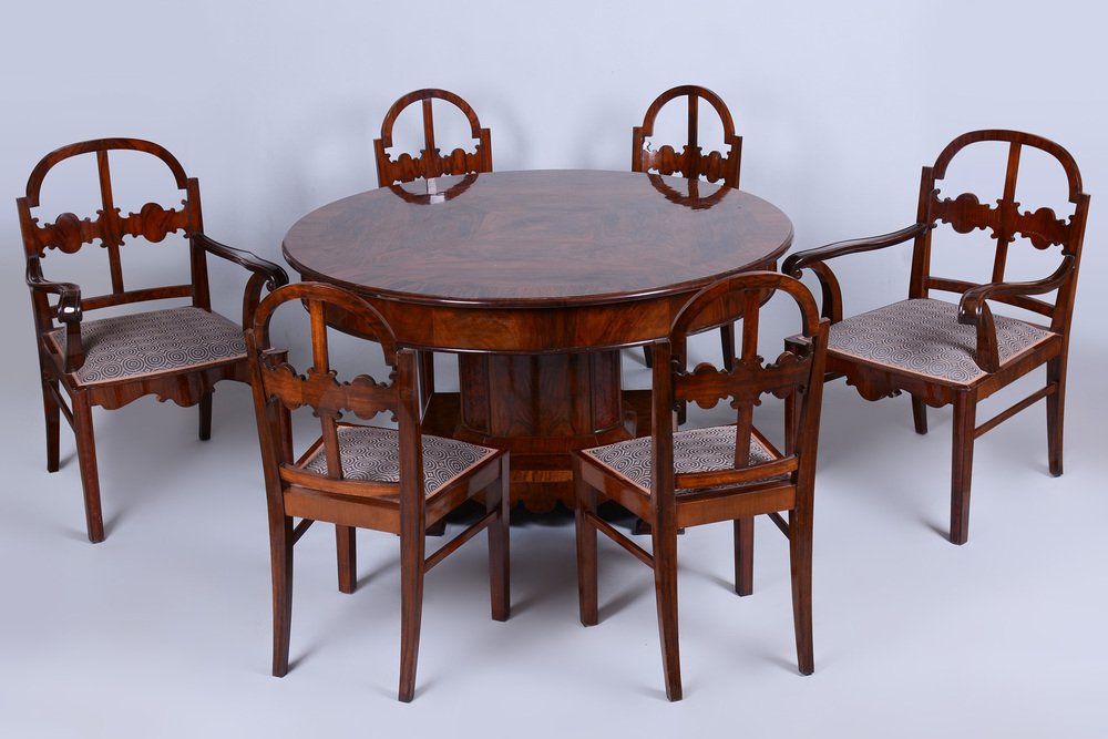 Art Deco Dining Table in Walnut, Czech, 1920s
