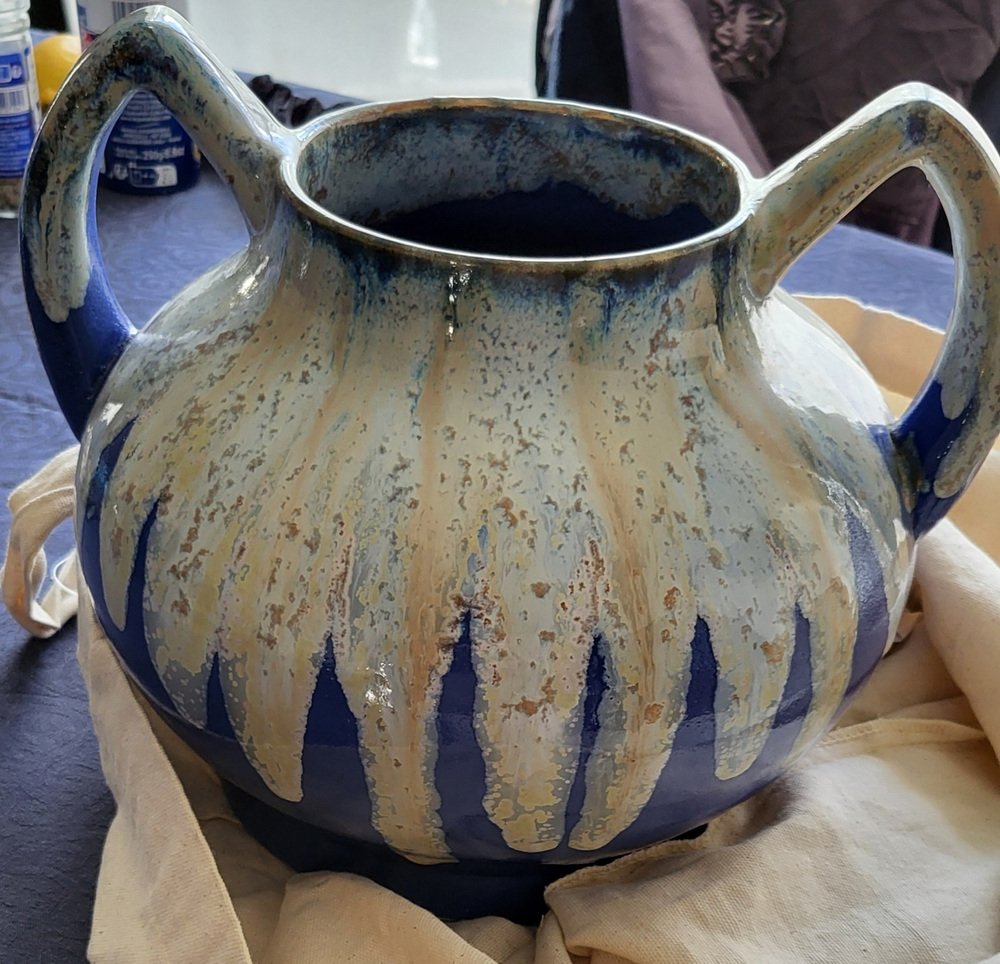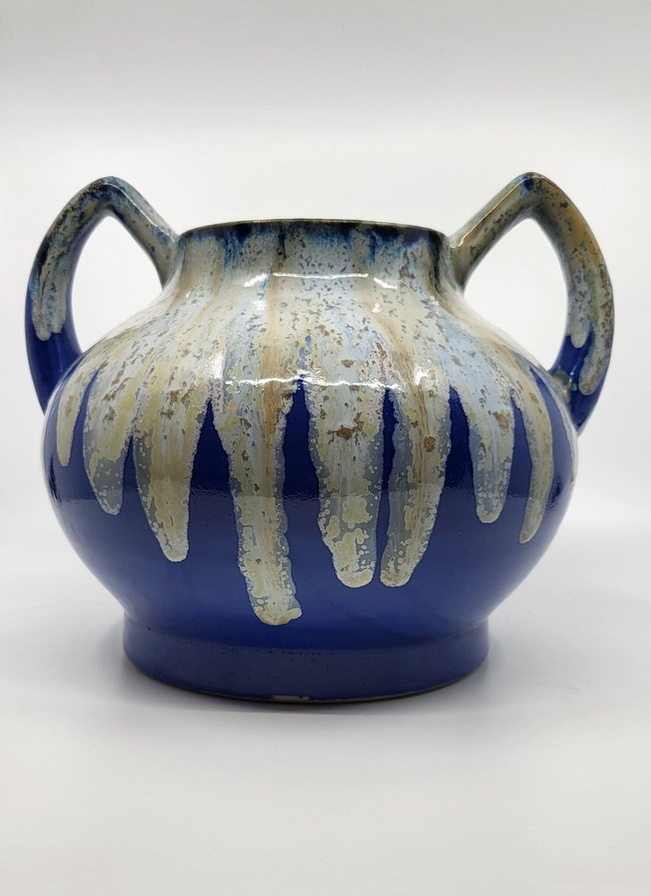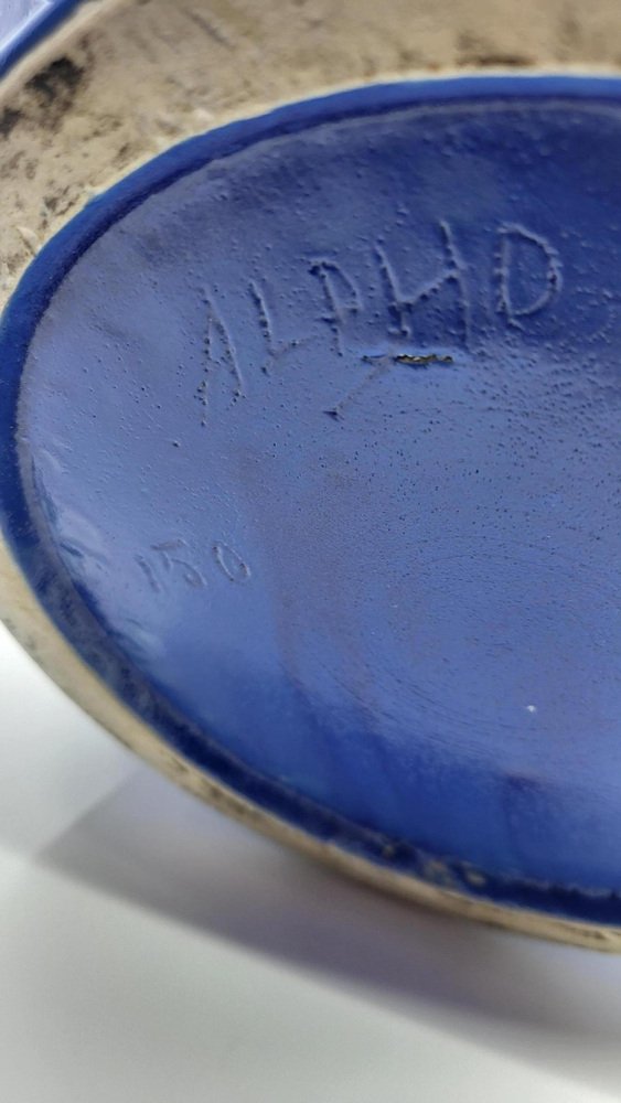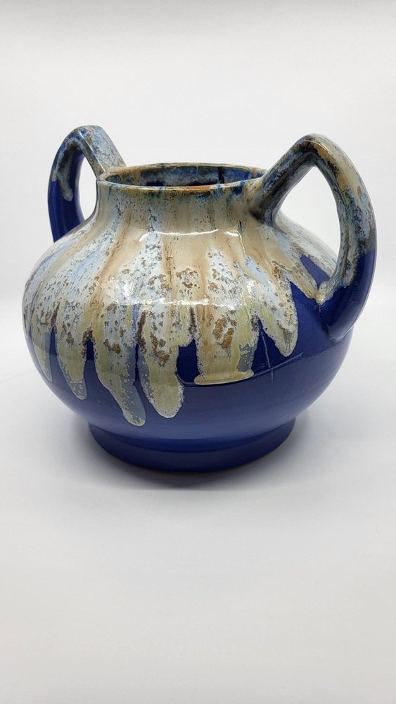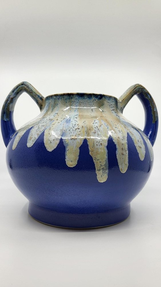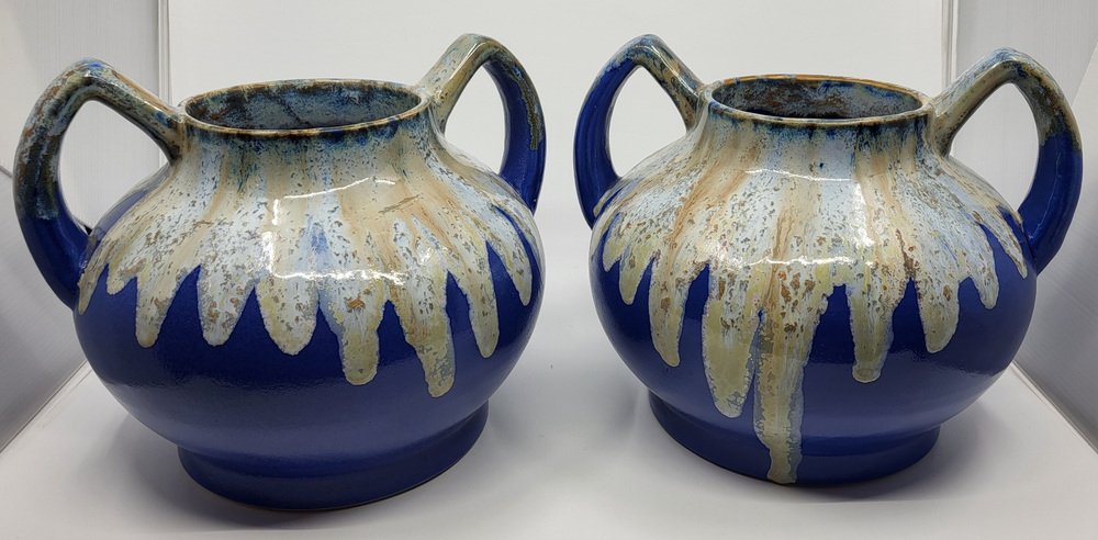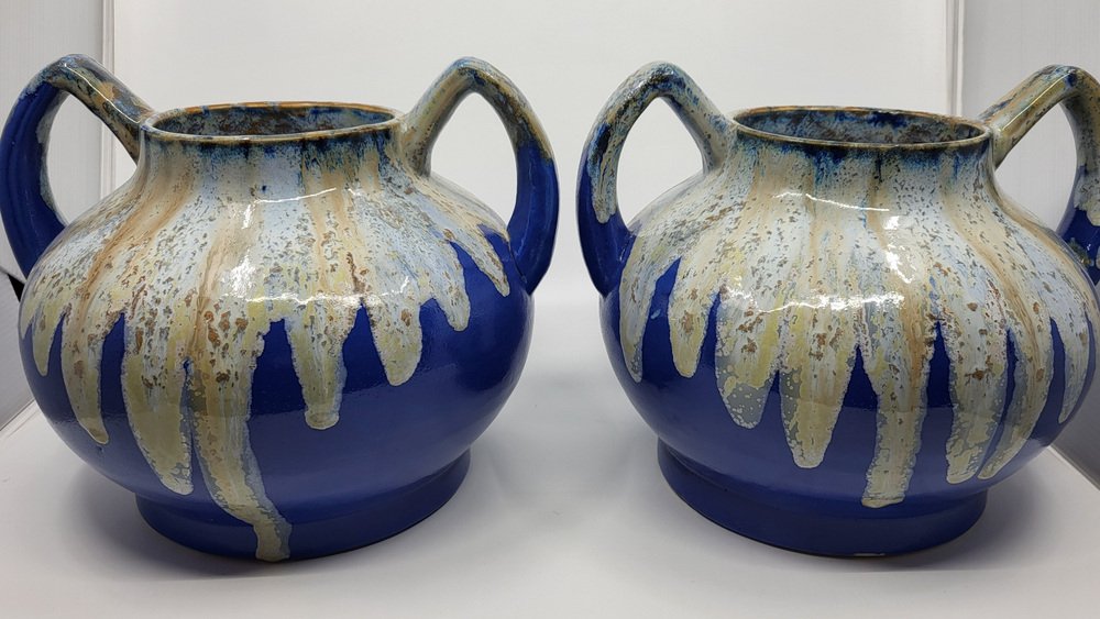 Art Deco French Alphonse Mouton Vases Called Alpho in Blue Ceramic, 1930s, Set of 2