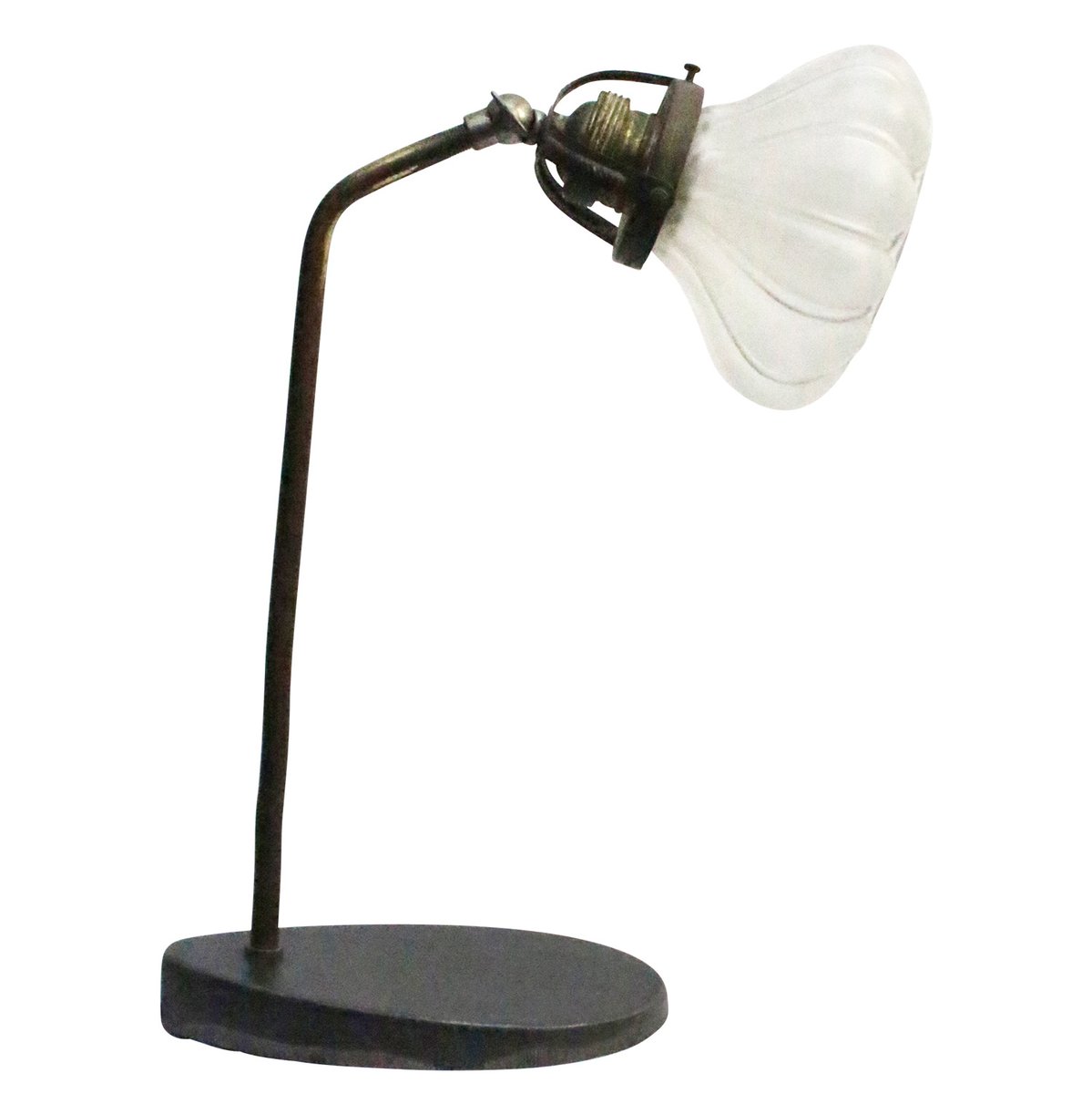 Art Deco French Cast Iron & Frosted Glass Desk Light, 1930s