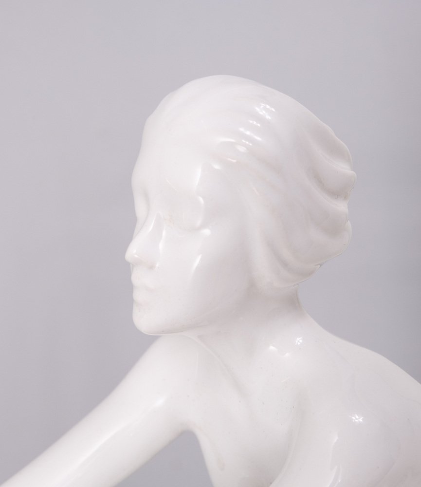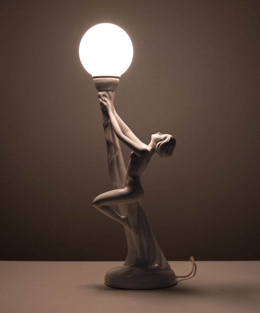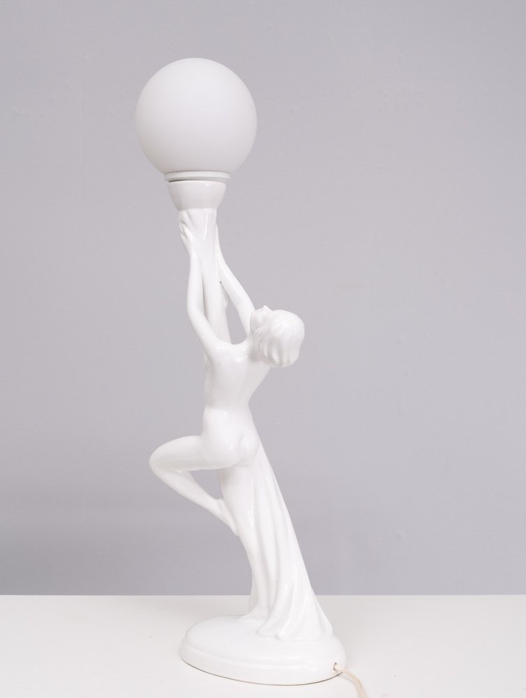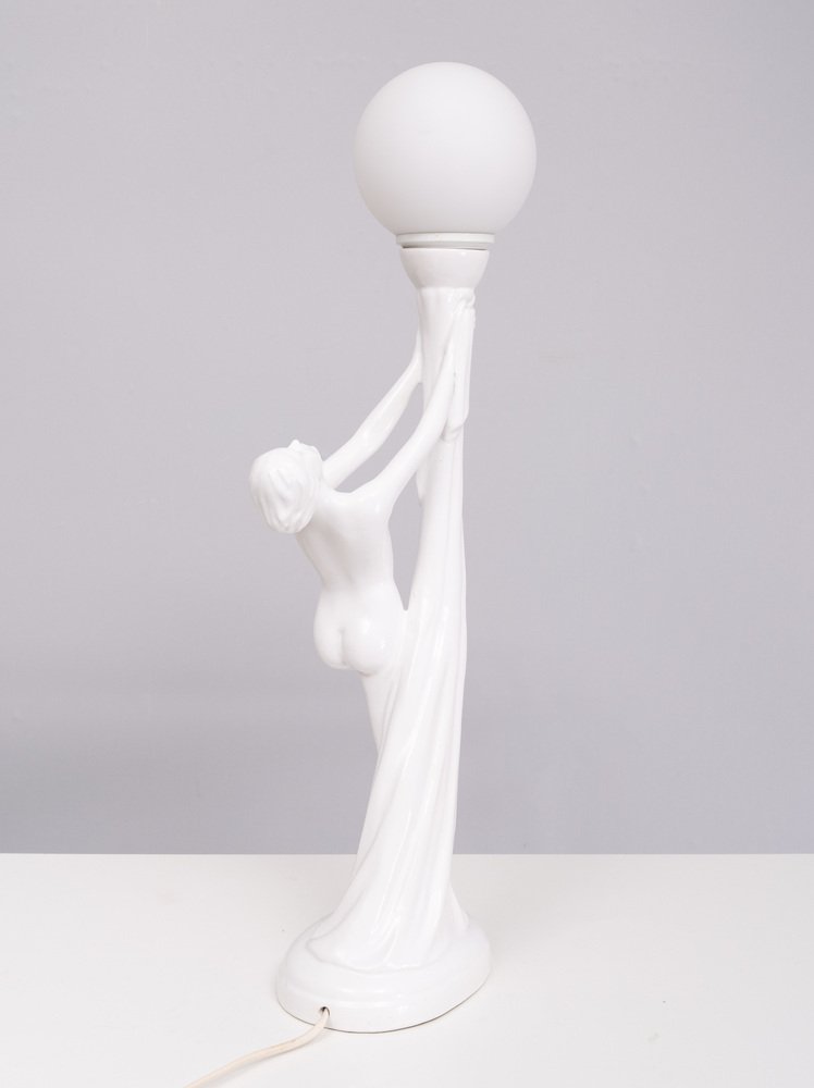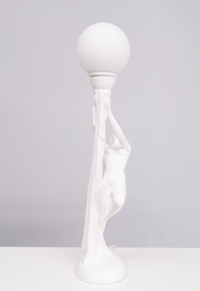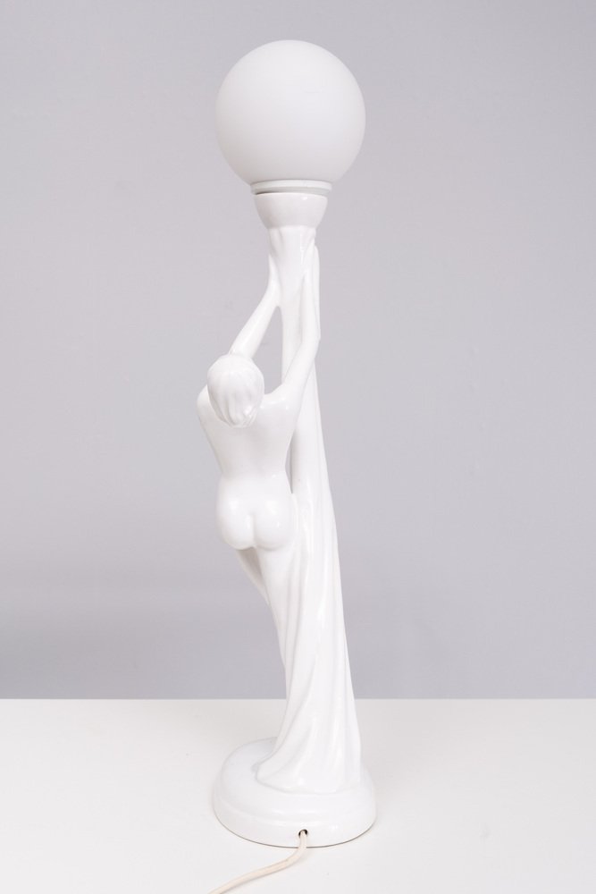 Art Deco Italian White Ceramic Naked Woman Lamp, 1970s