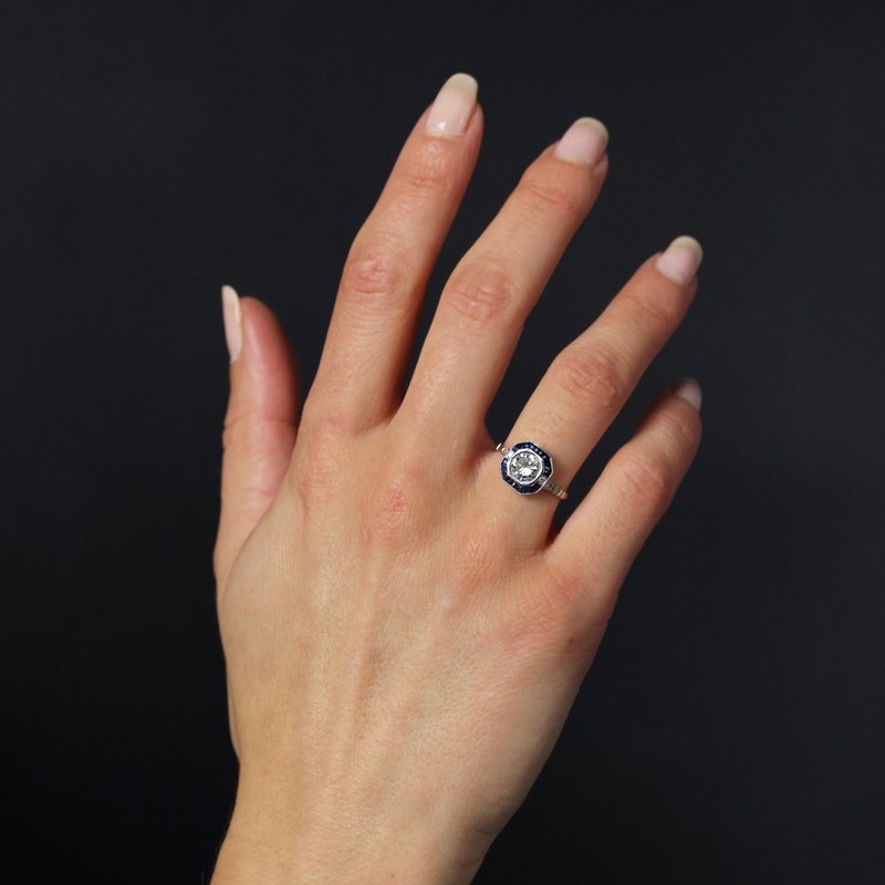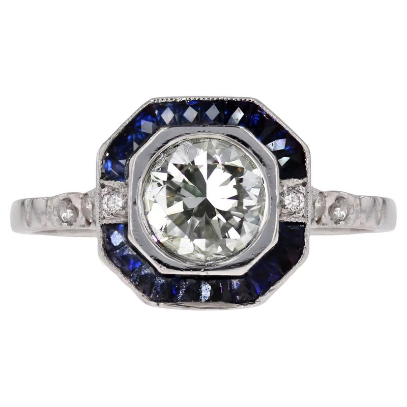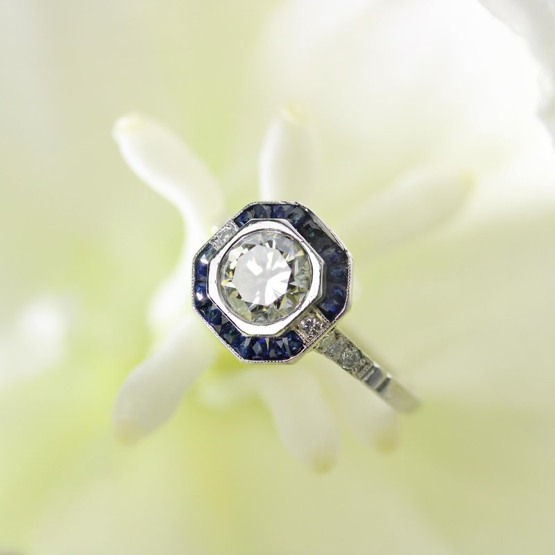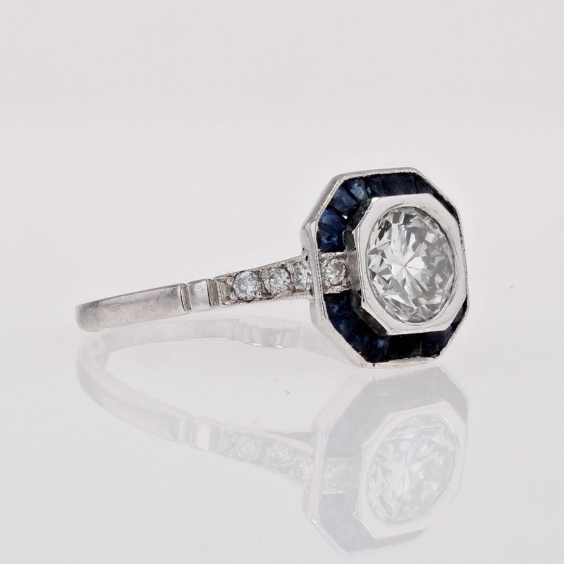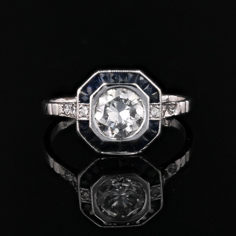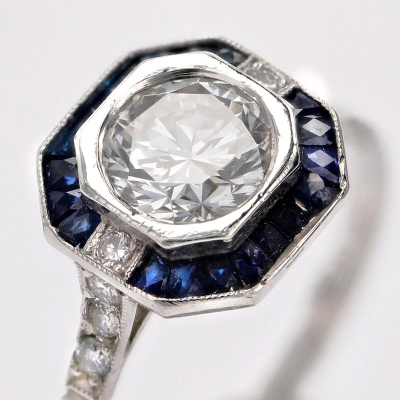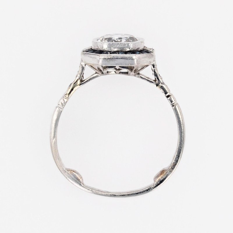 Art Deco Modern Sapphires Diamonds Platinum Ring