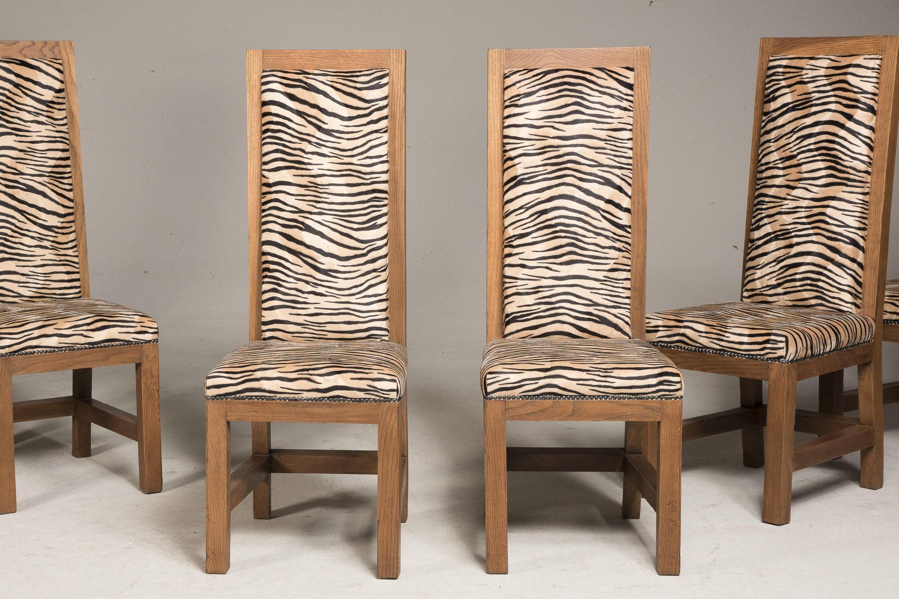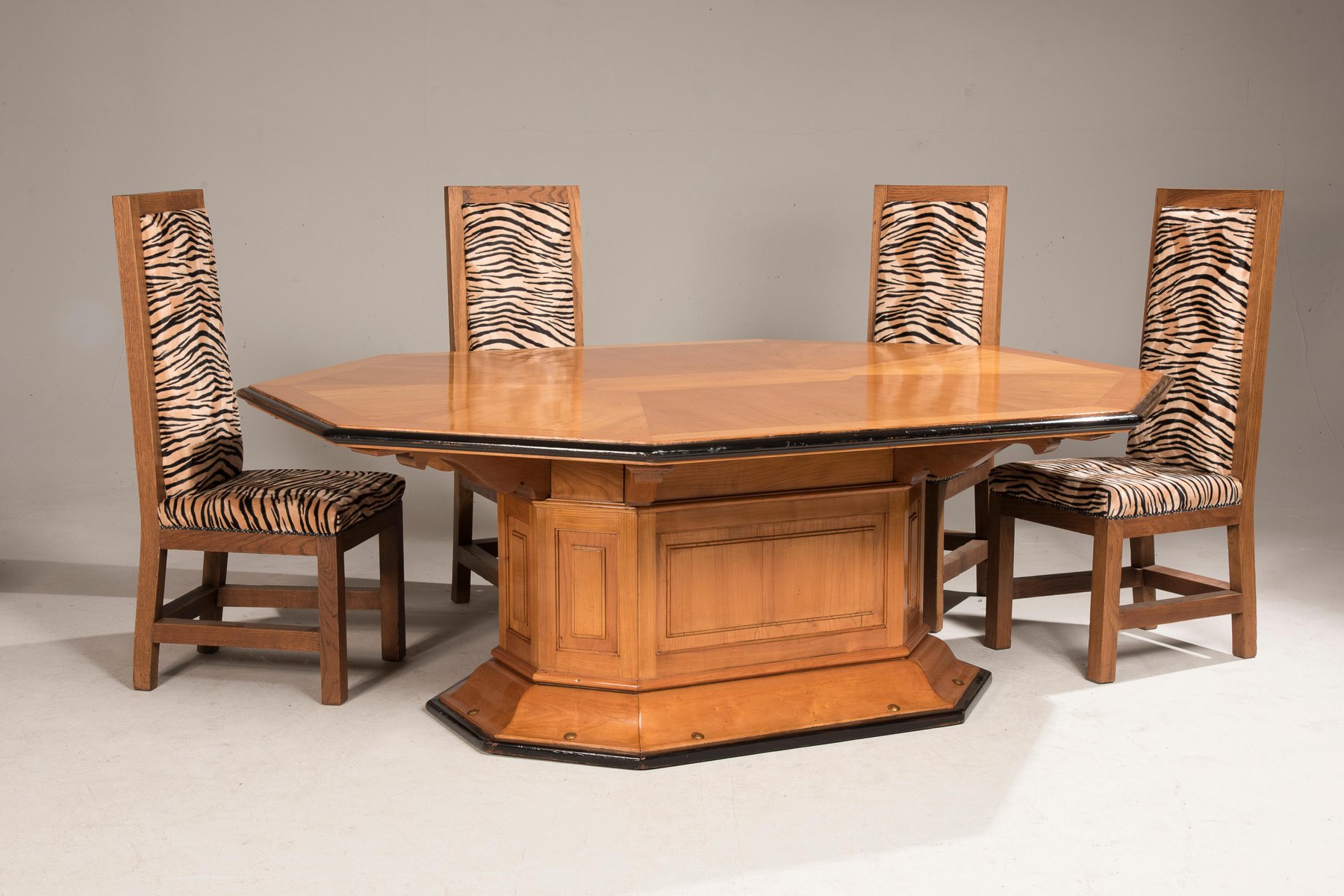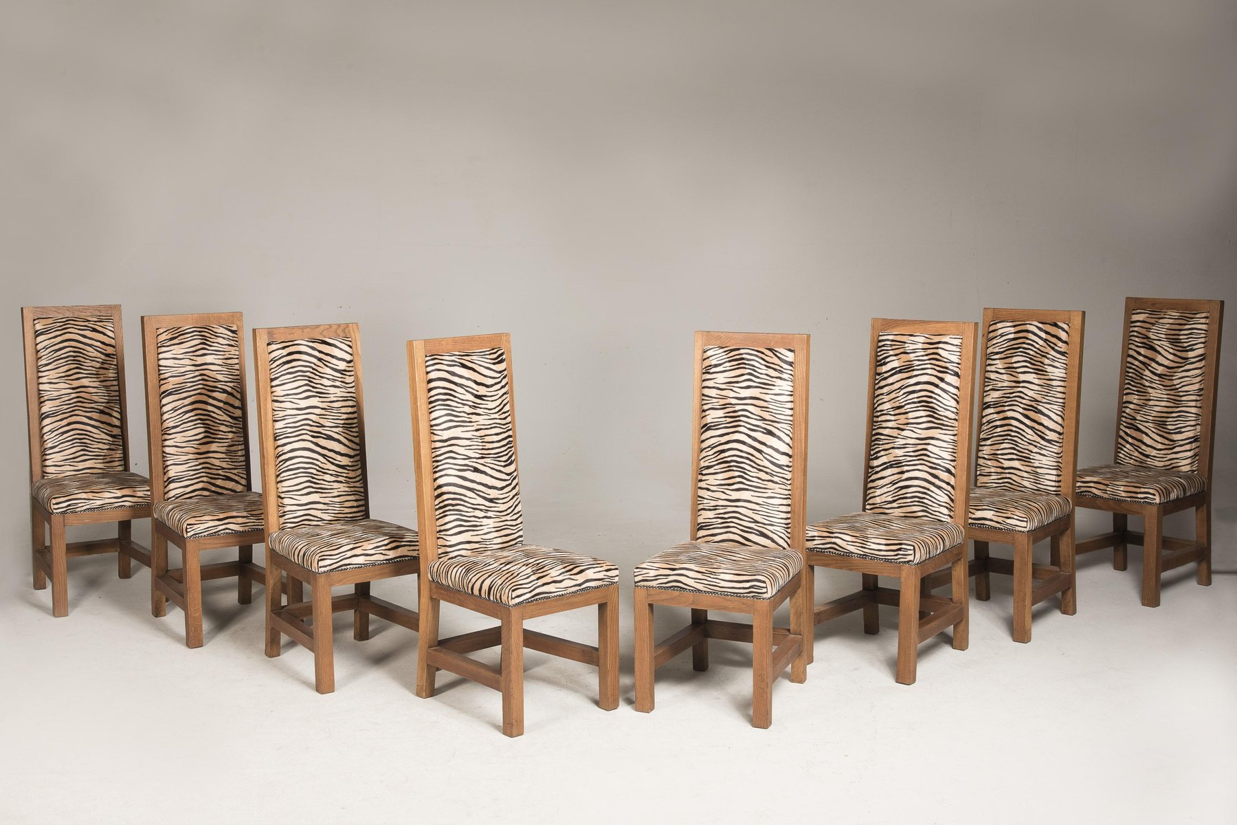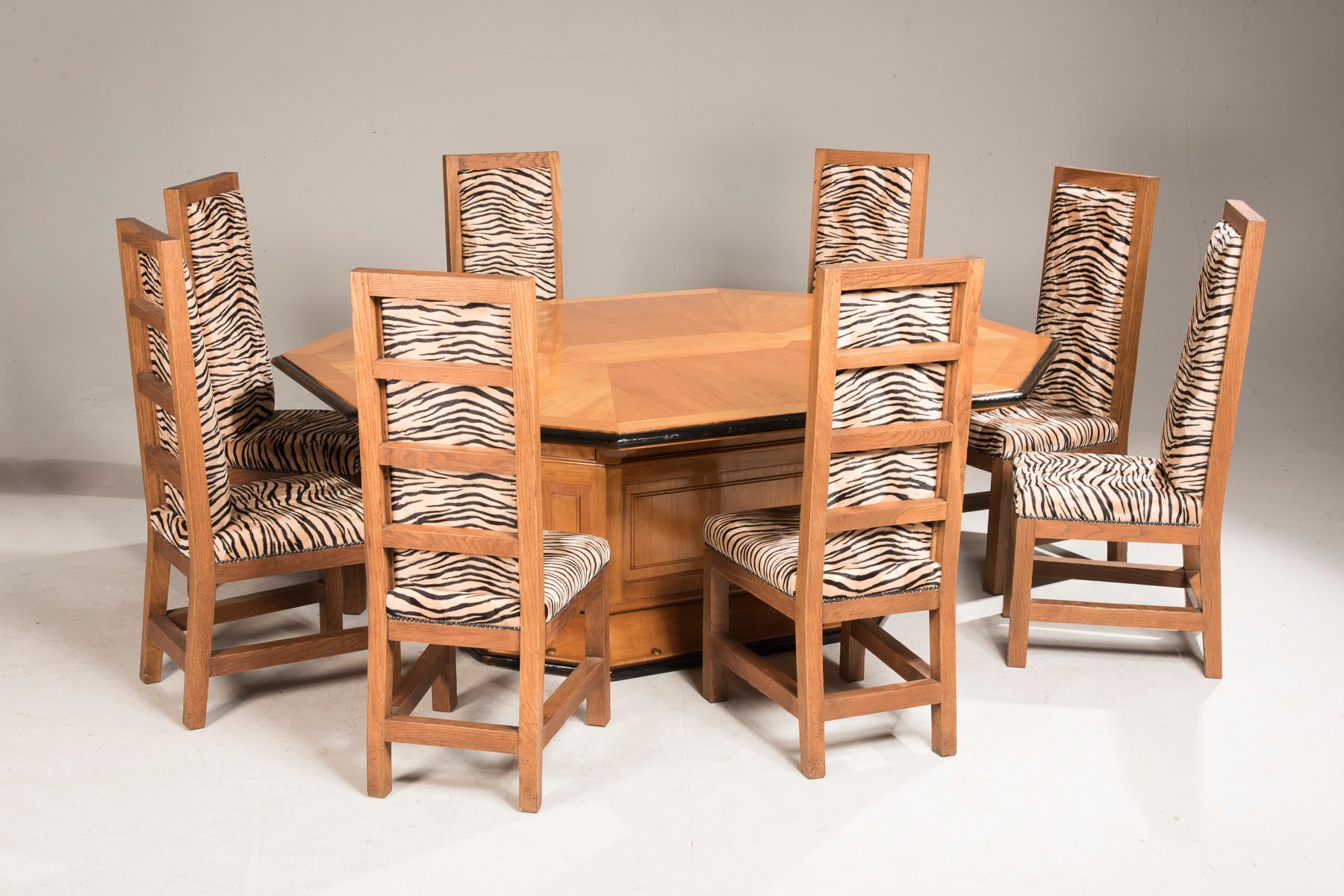 Art Deco Oak & Velvet Dining Chairs, 1930s, Set of 8