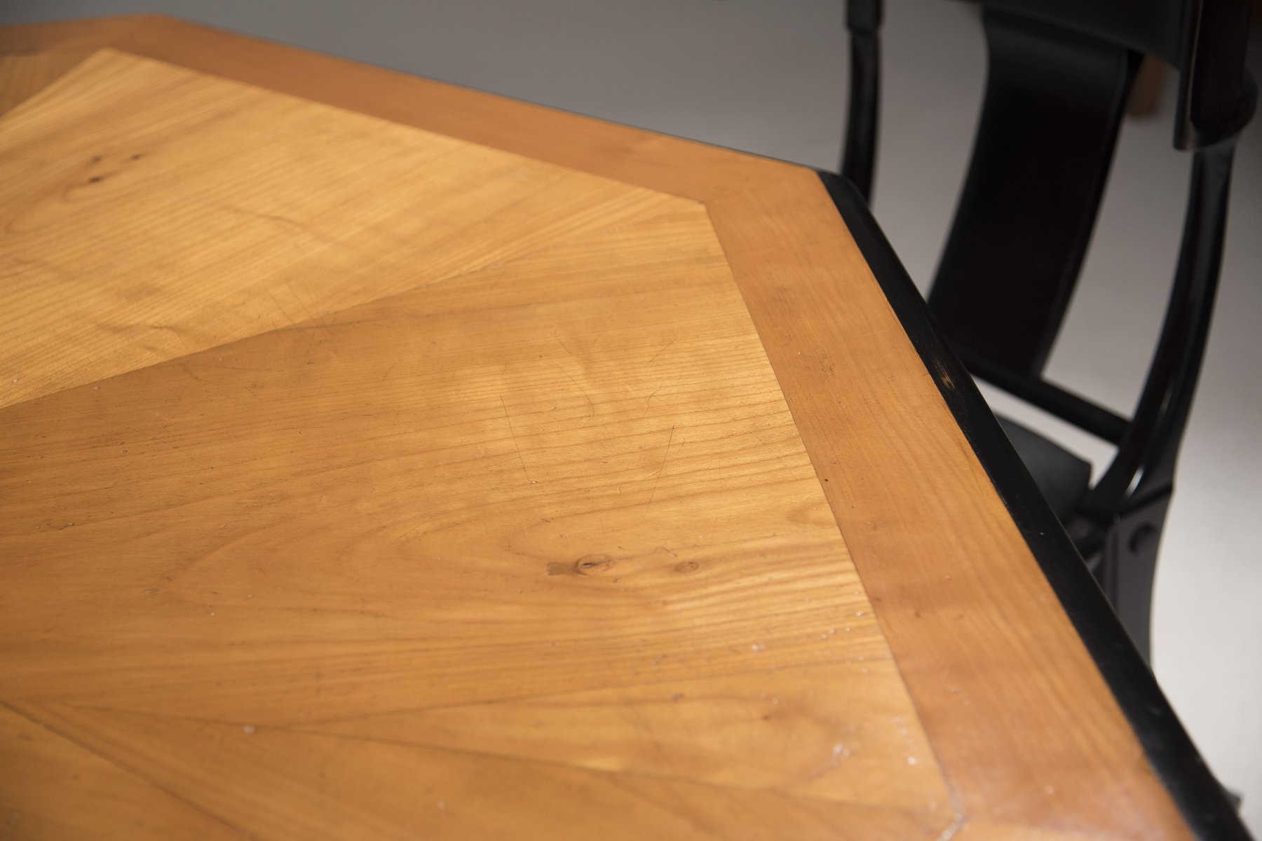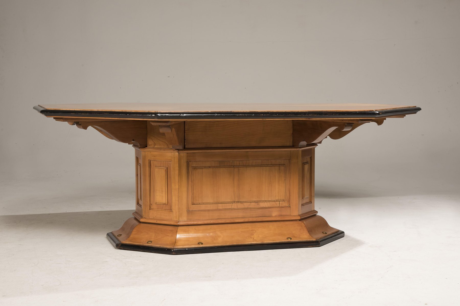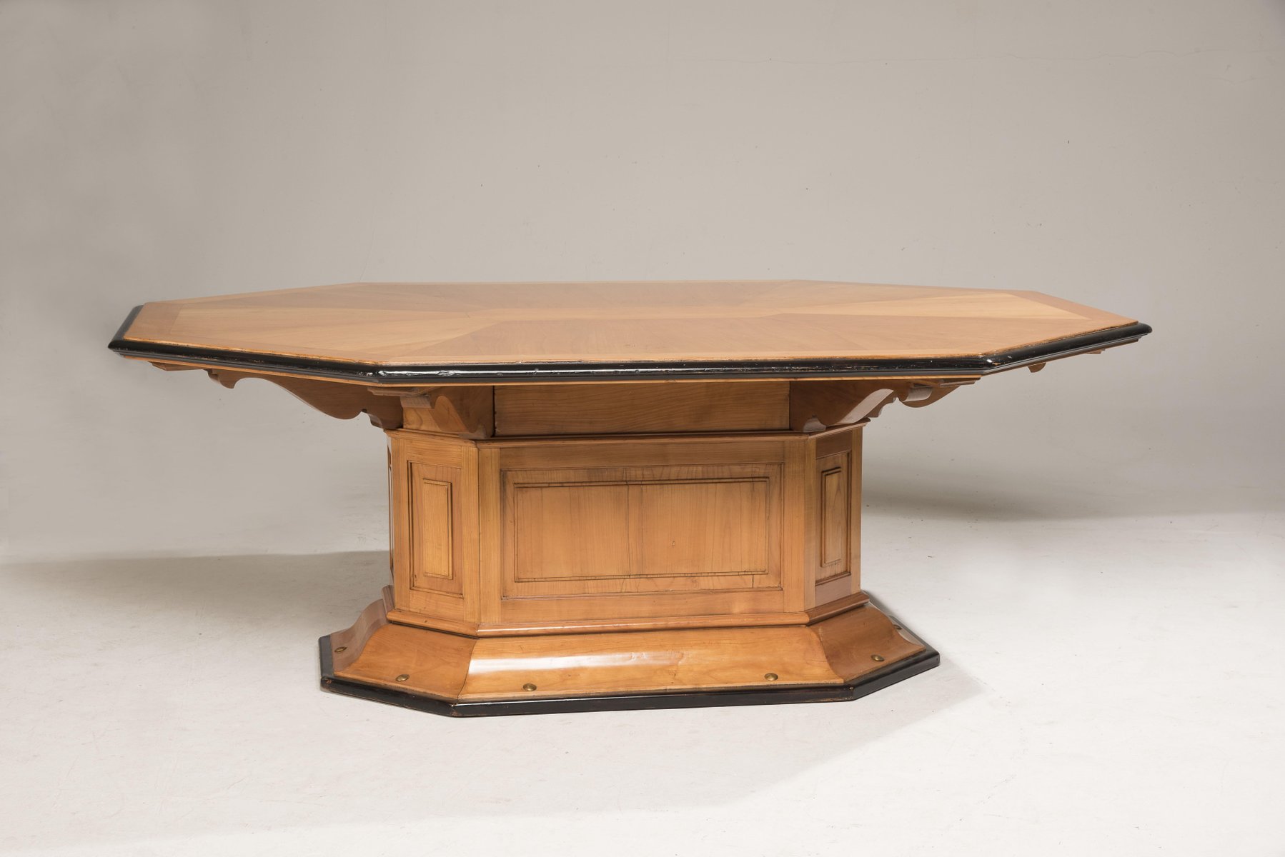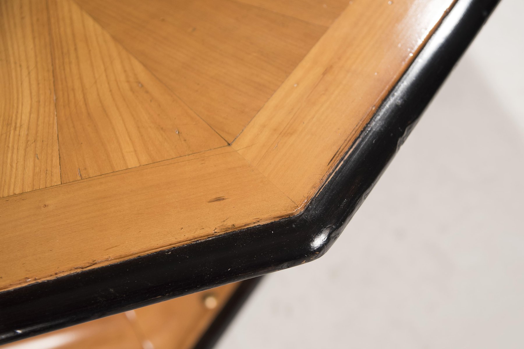 Art Deco Octagonal Cherry Wood Table with Black Borders and Brass Details, 1930s
