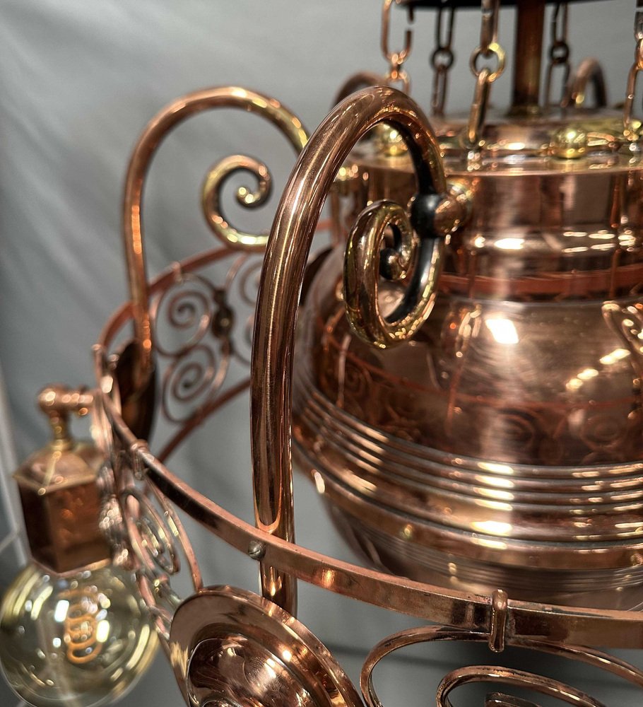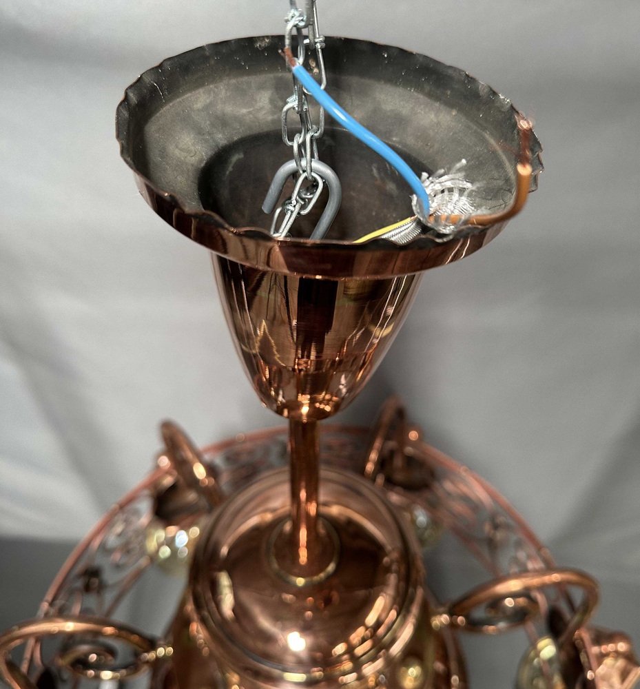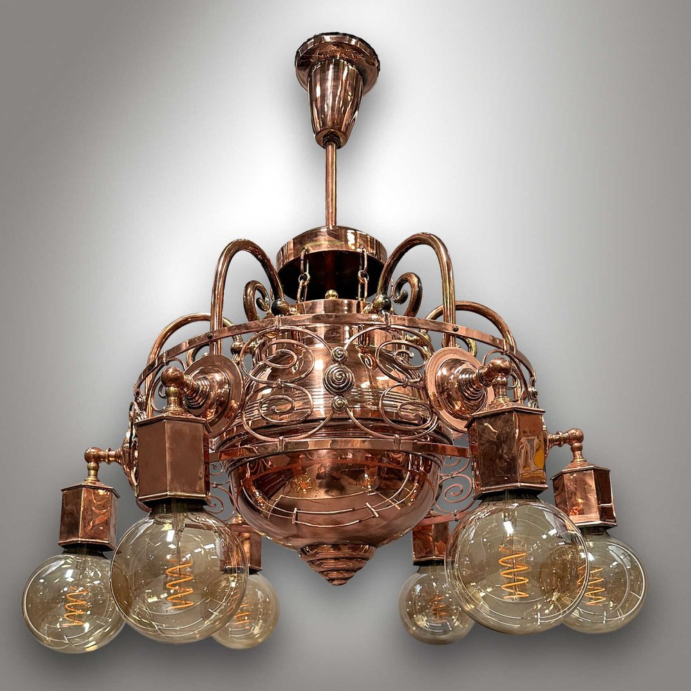 Art Nouveau Copper Light Chandelier, 1920s